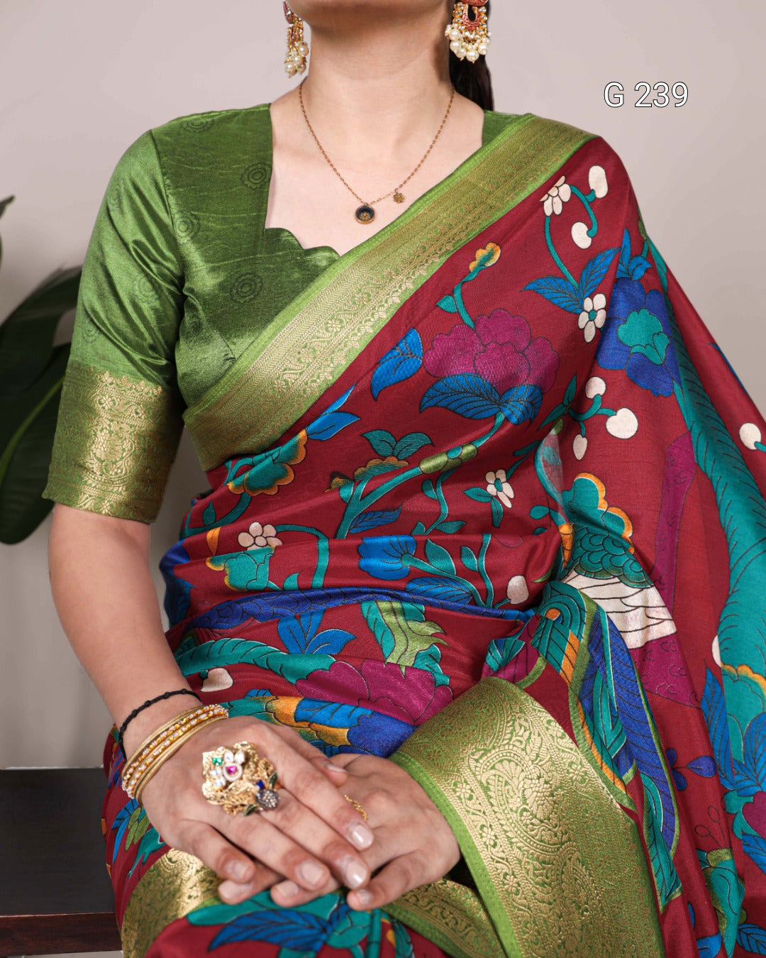 Printed Zari Weaving Tasar Silk Saree – G 239 Maroon