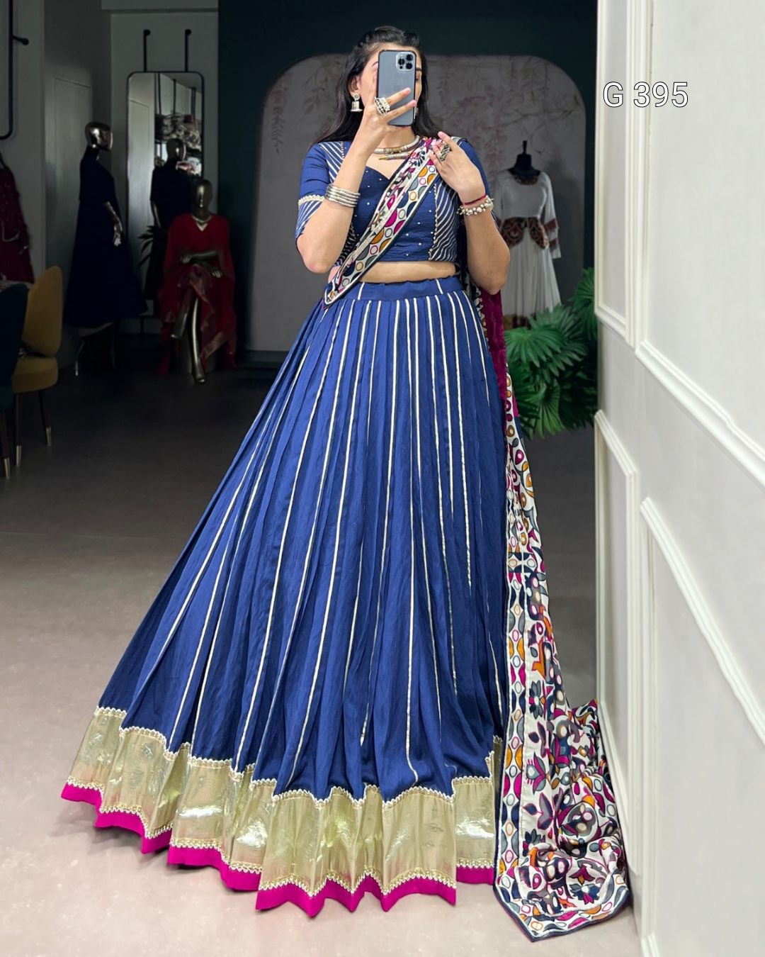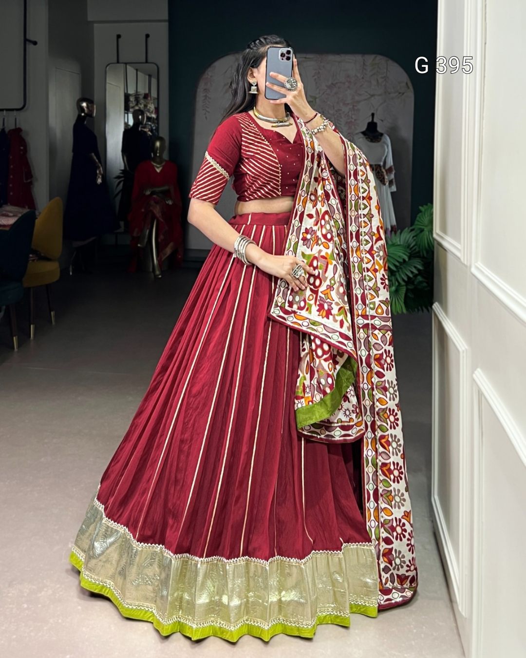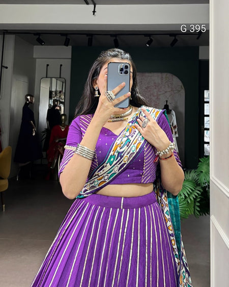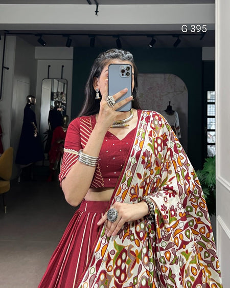 Pure Chanderi Lehenga with Zari Weaving & Embossed Design – G 395