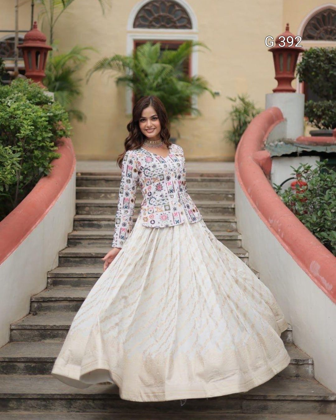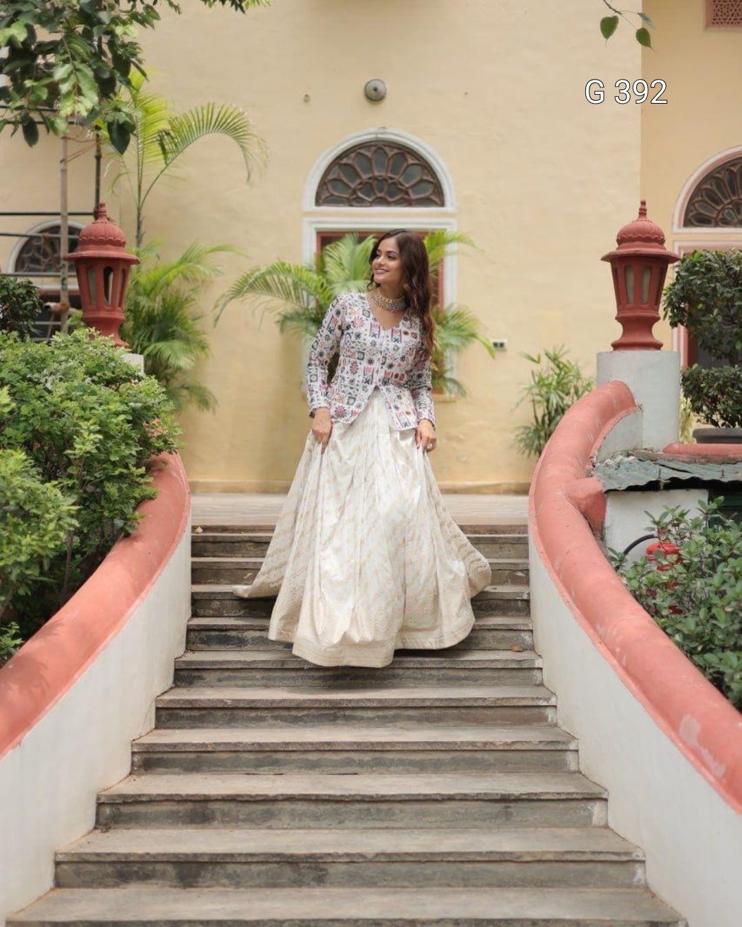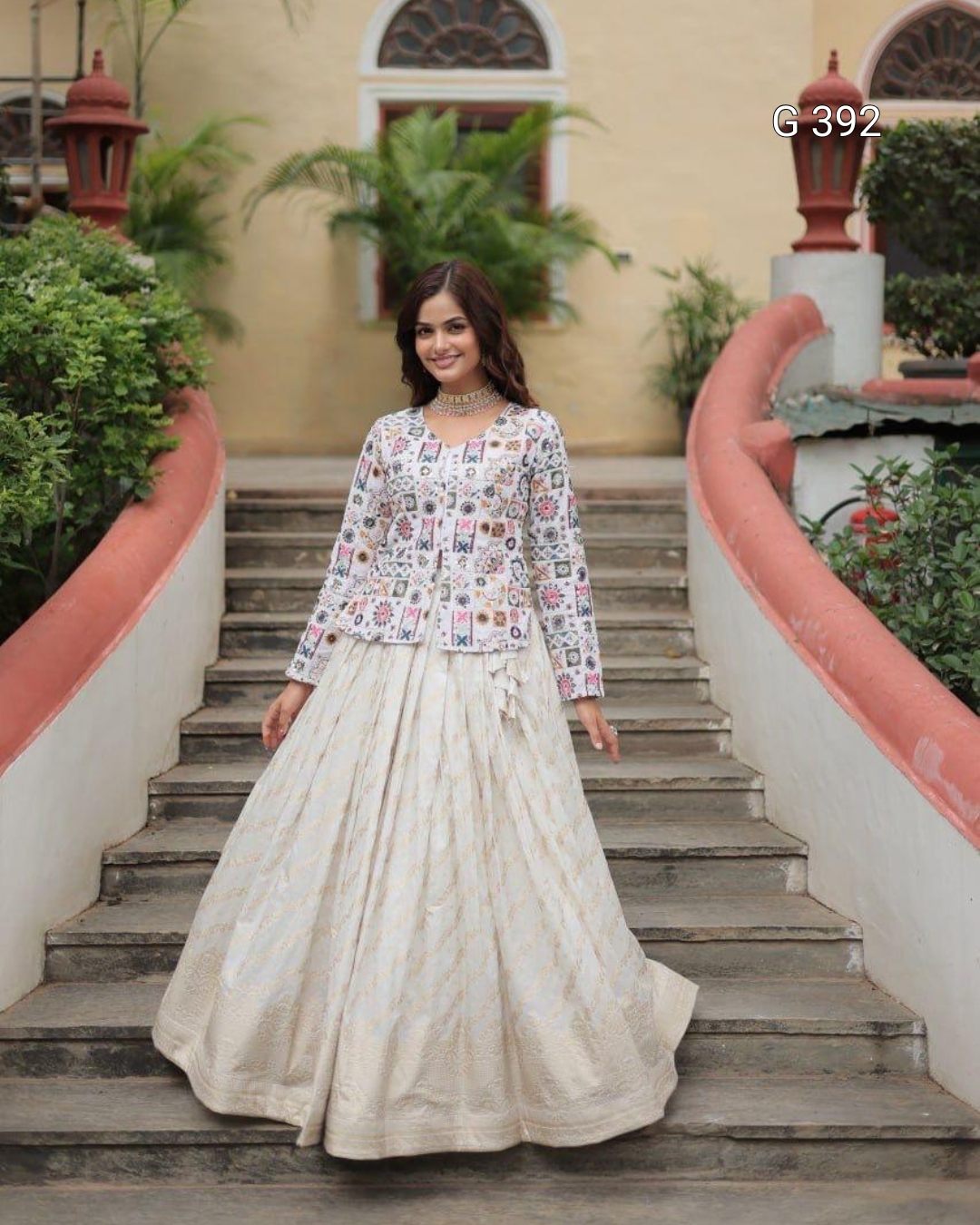 Pure Dayble Viscose Jacquard Lehenga with Thread-Sequins Top – G 392 White