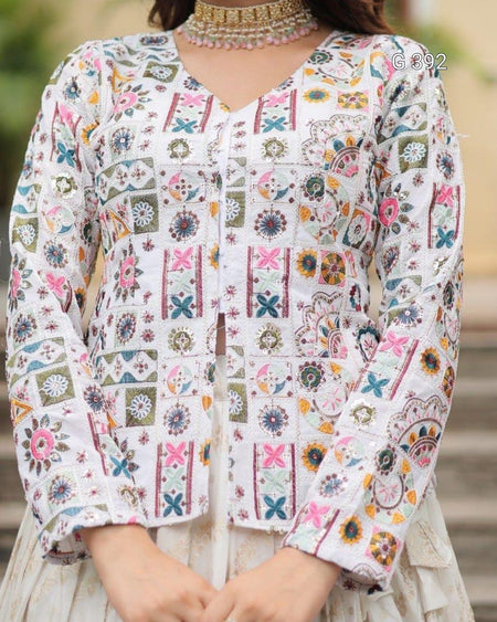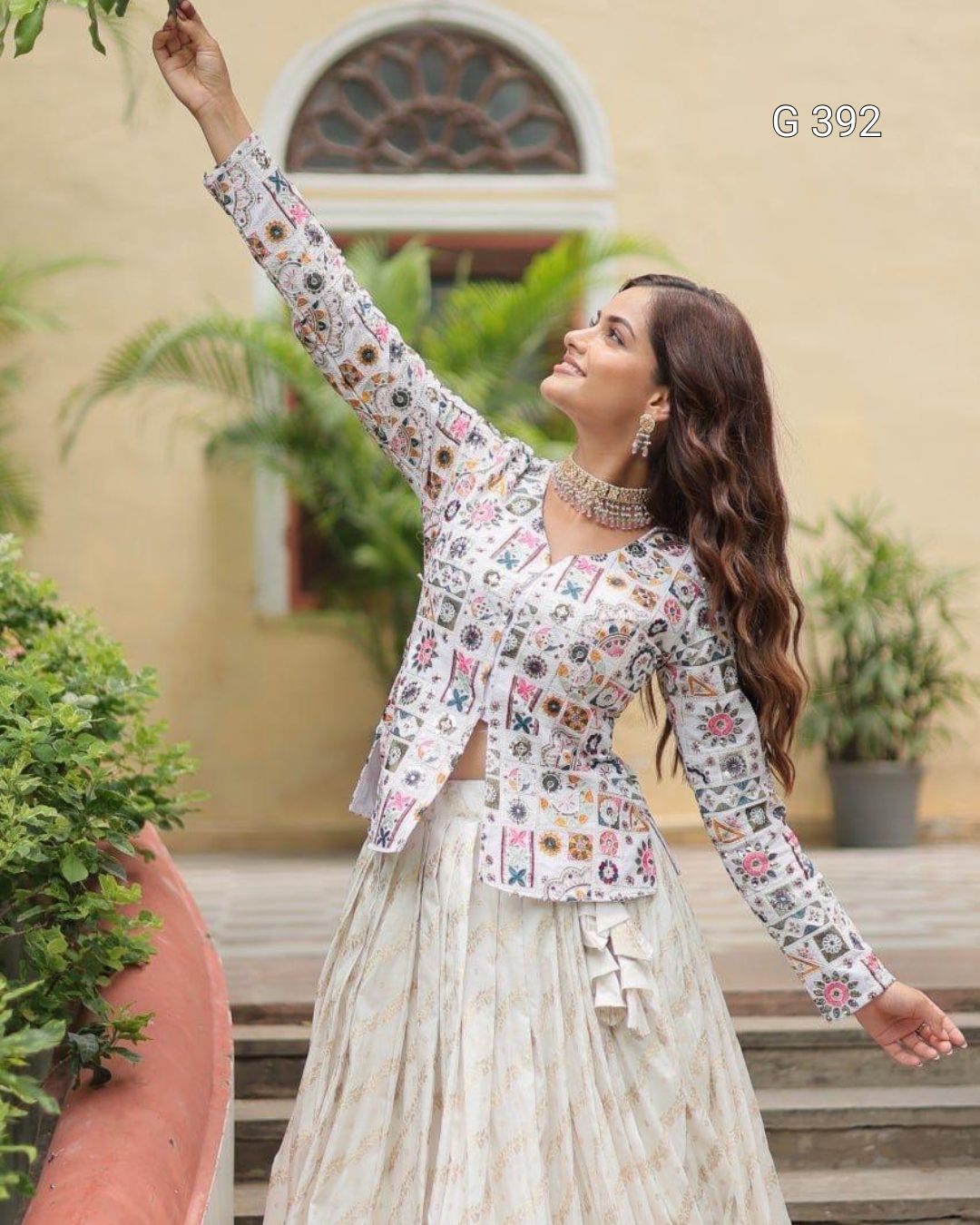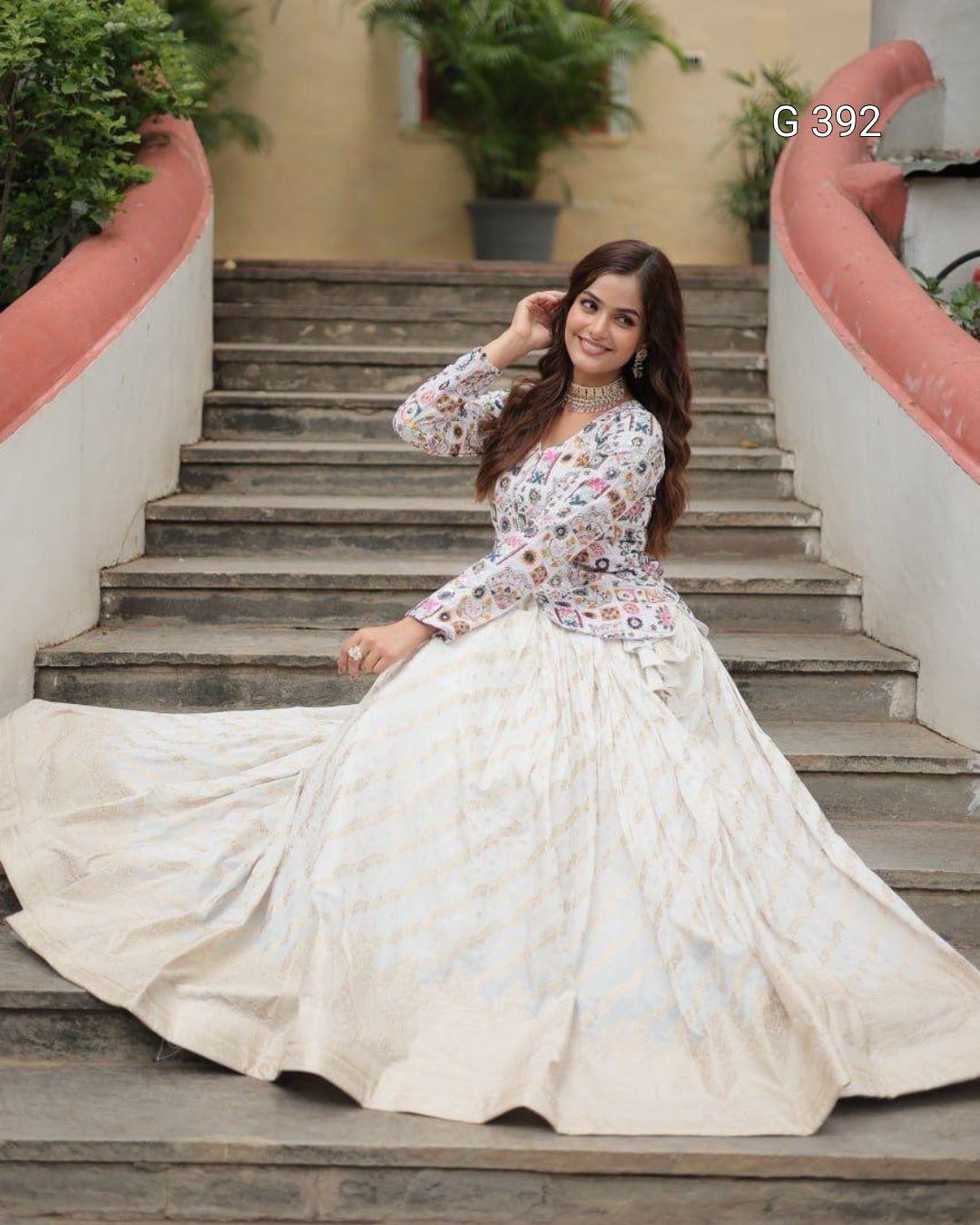 Pure Dayble Viscose Jacquard Lehenga with Thread-Sequins Top – G 392 White