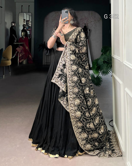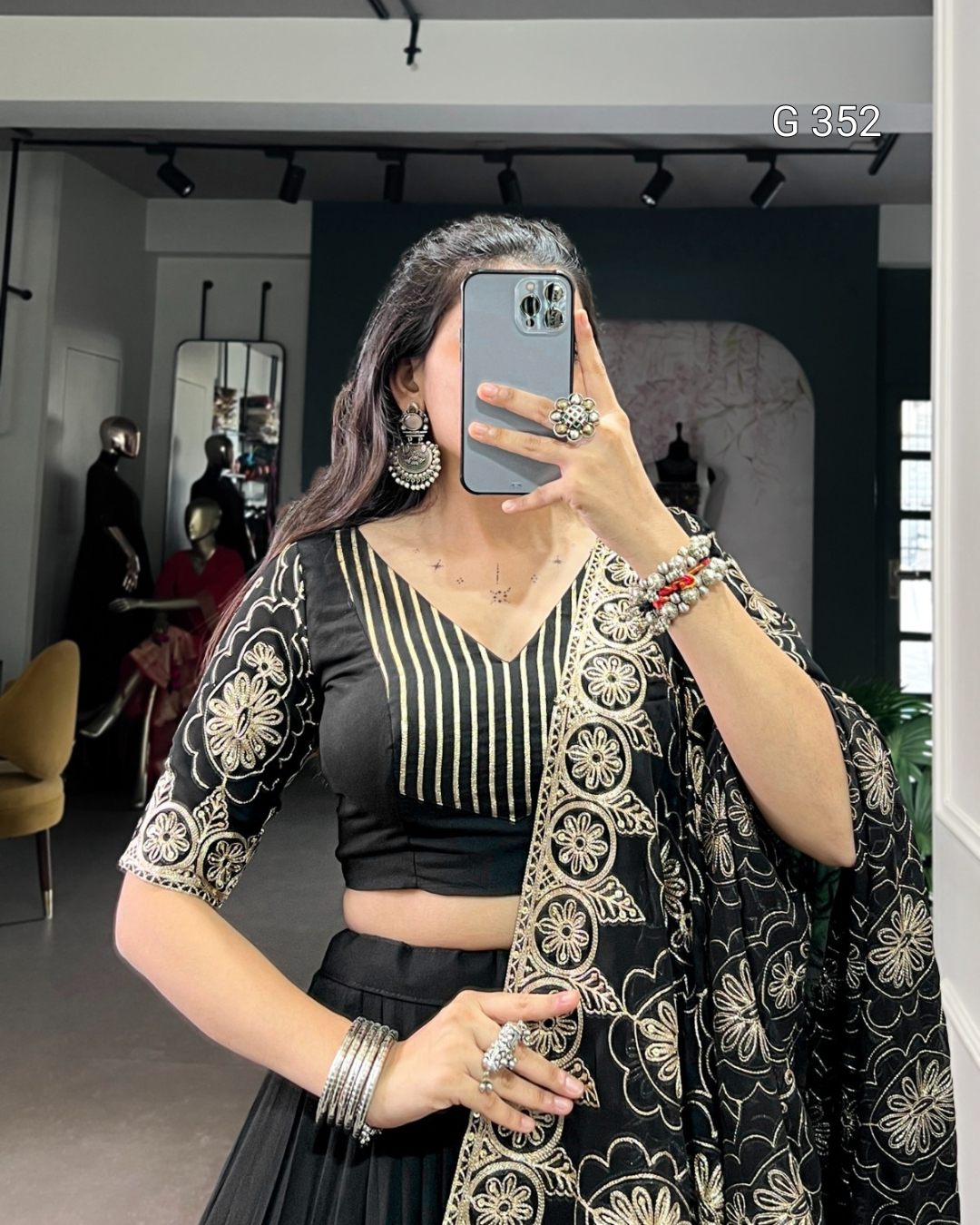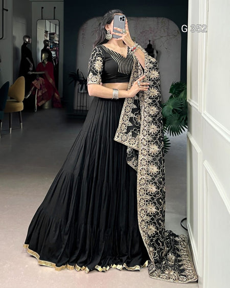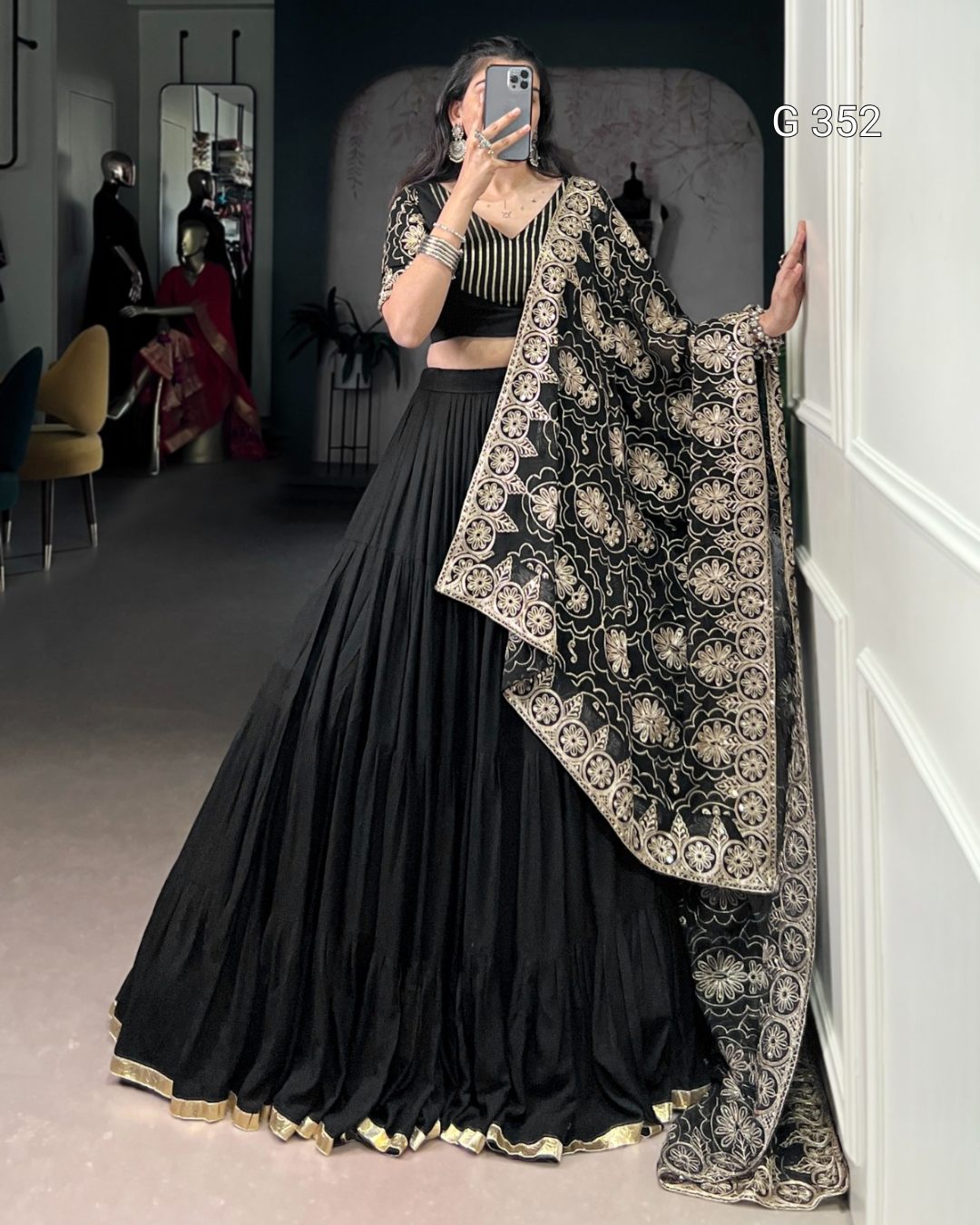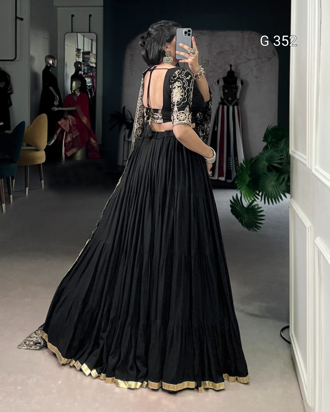 Pure Rayon Lehenga with Embossed Lace & Sequins Work - G 352 Black