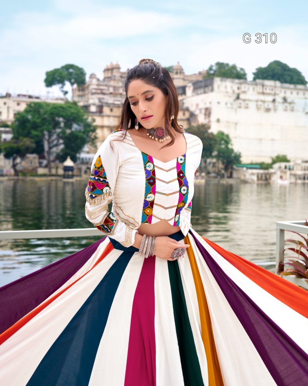 Pure Rayon Lehenga with Gota Patti & Mirror Work – G 310 White