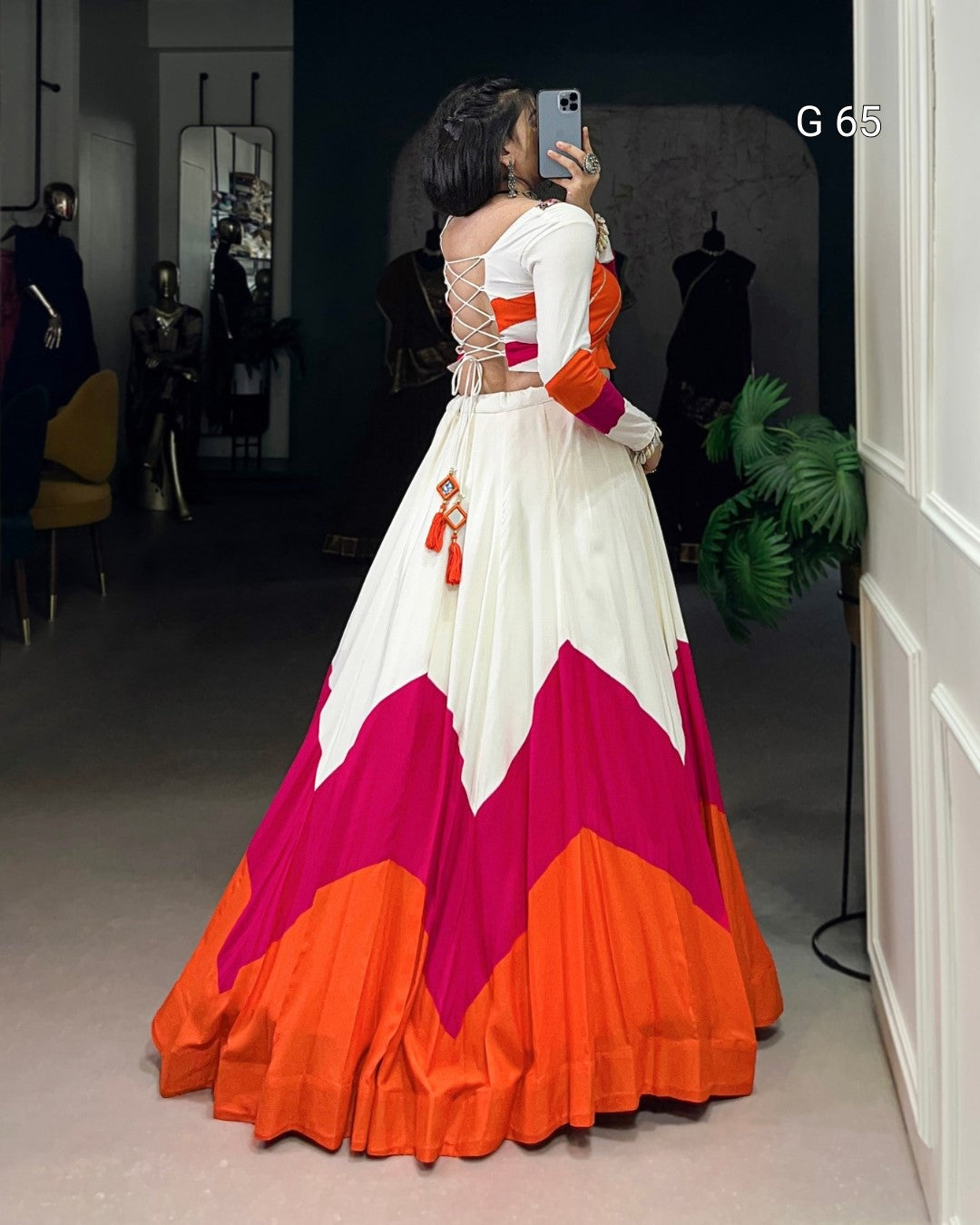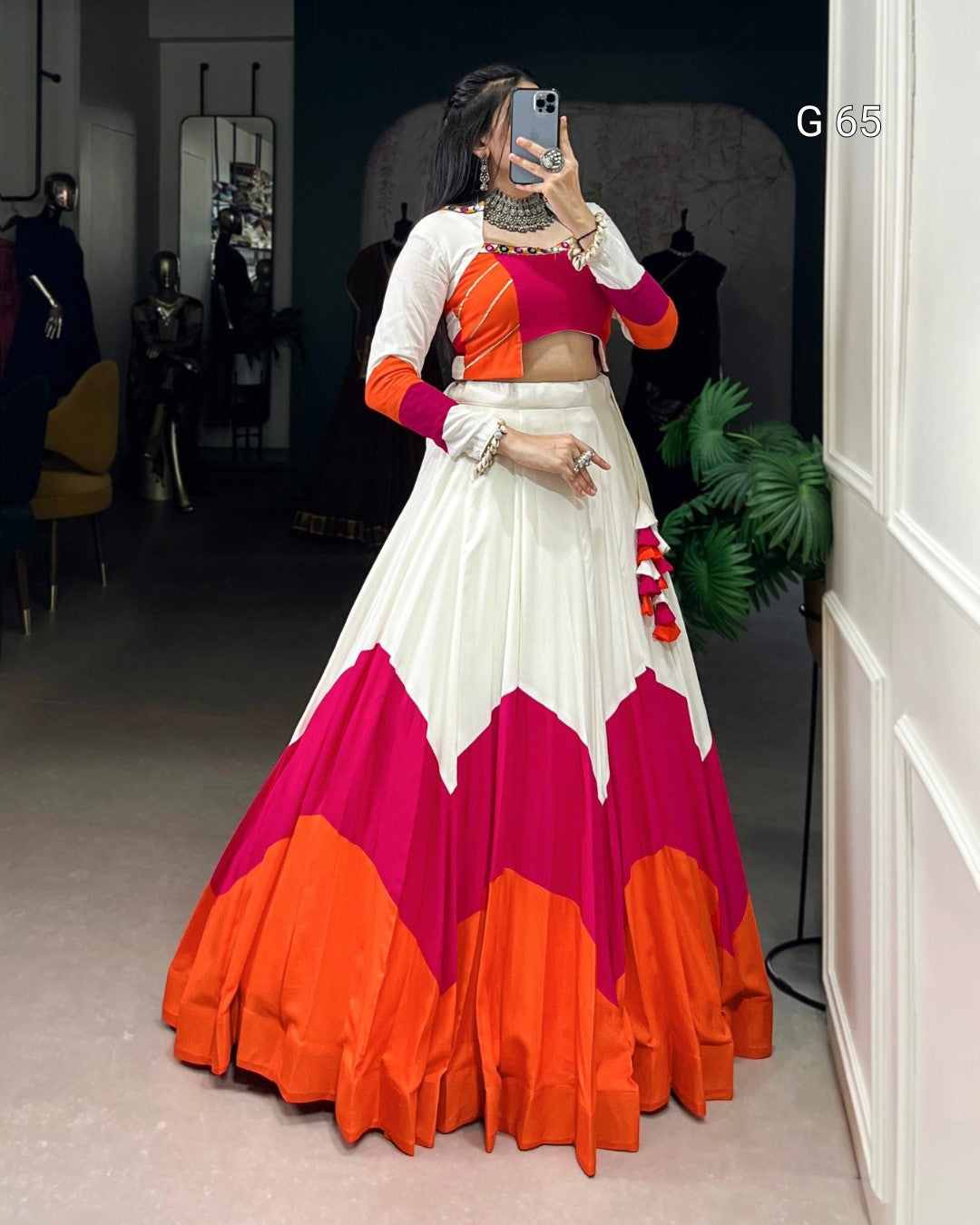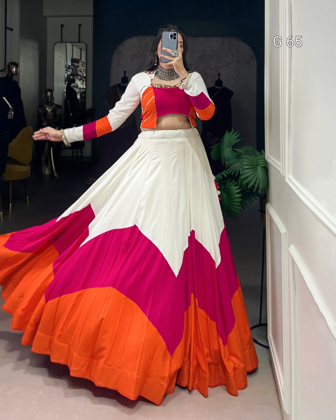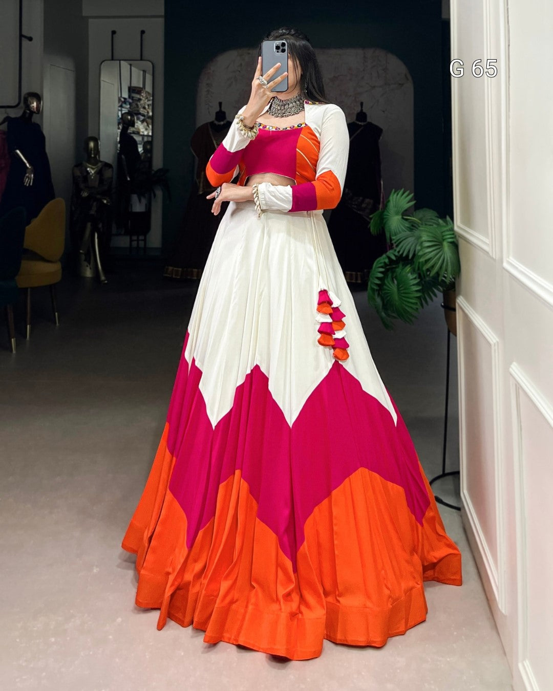 Pure Rayon Lehenga with Mirror Gamthi Work & Gotta Patti Lace – G 65 White