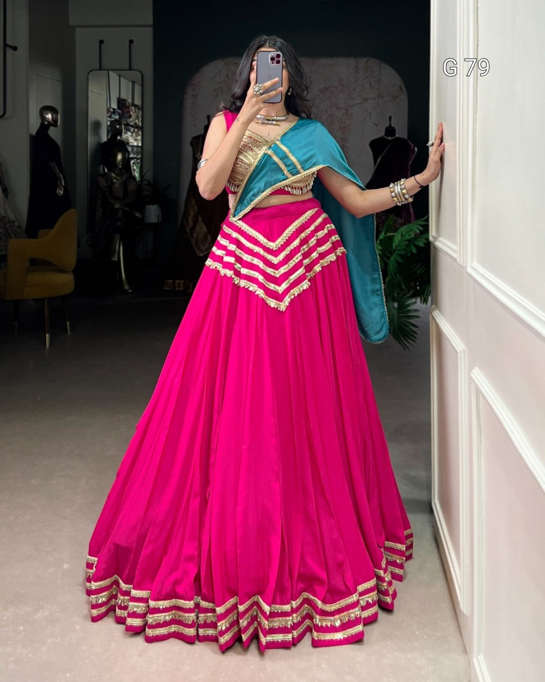 Pure Rayon Lehenga with Sequins Lace Touch Up – G 79 Pink