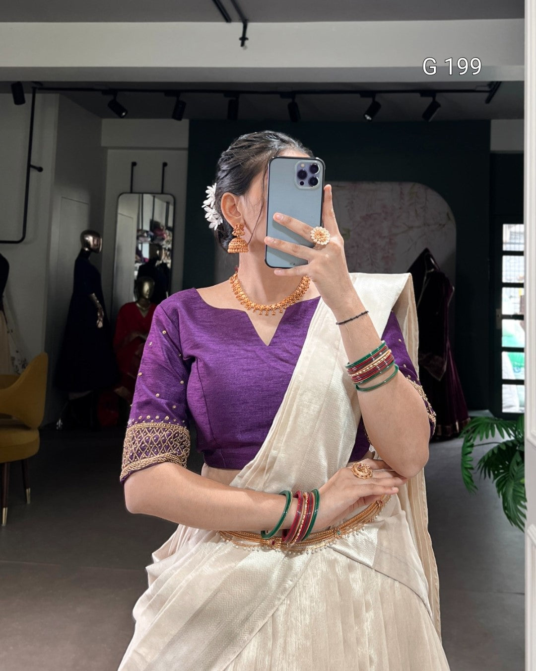 Purple Poly Tasar Lehenga with Viscose Border and Bead Work – G 199 Purple