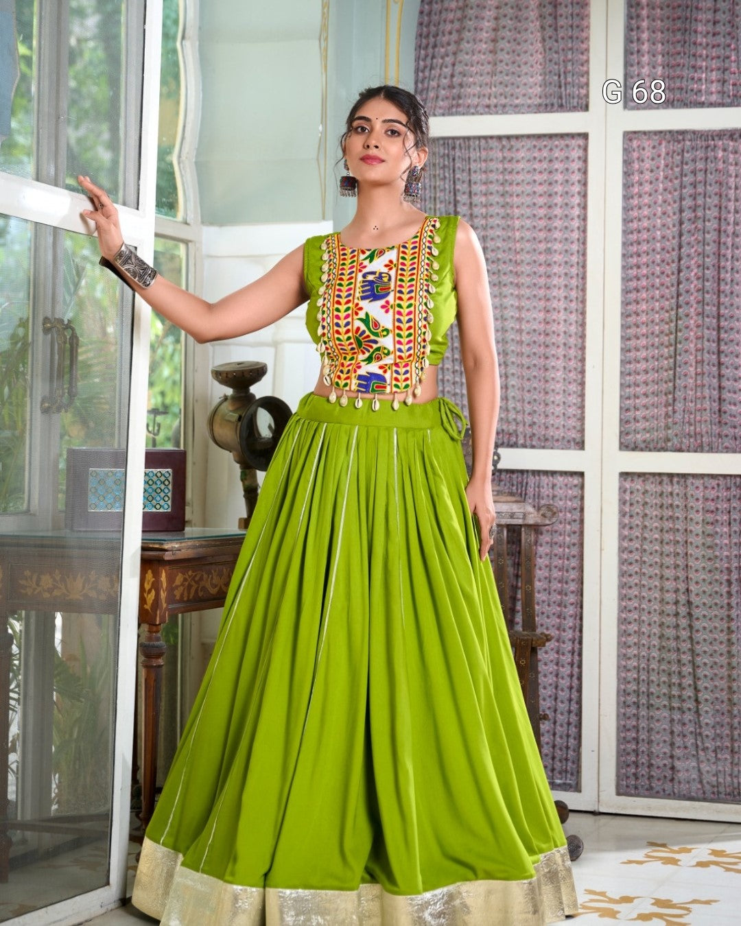 Rayon Lehenga with Lace Border & Gotta Patti Touch Up – G 68 Parrot