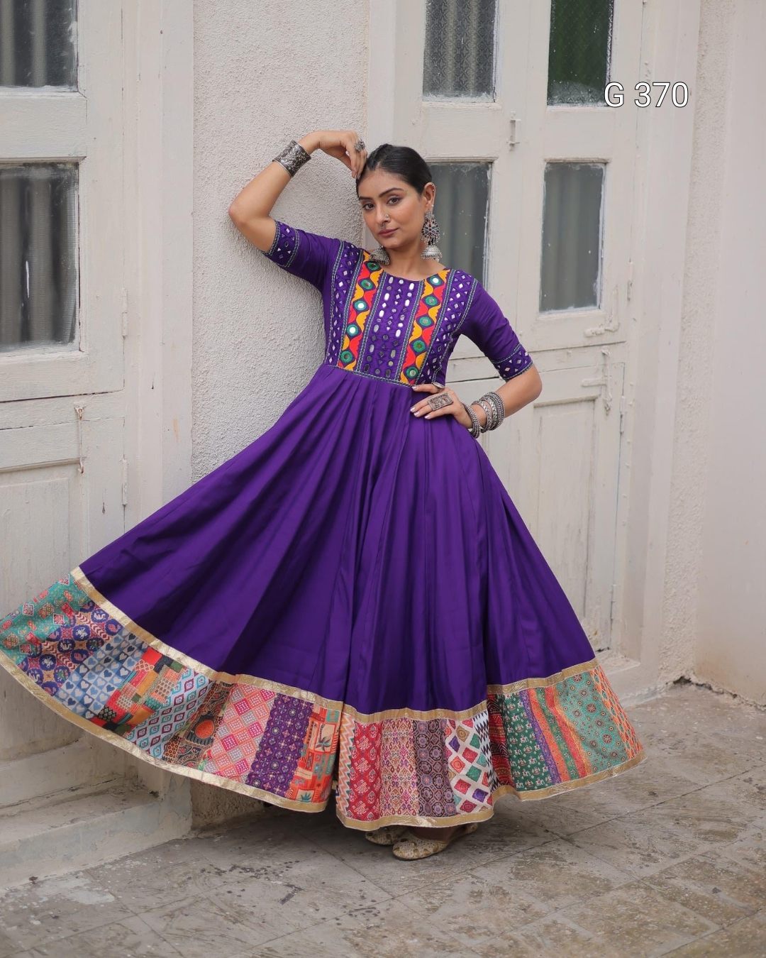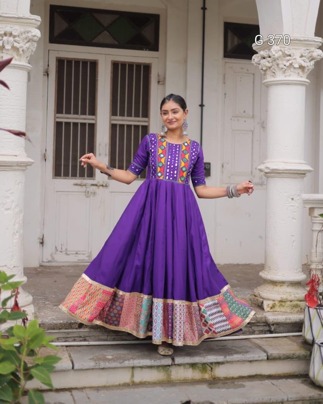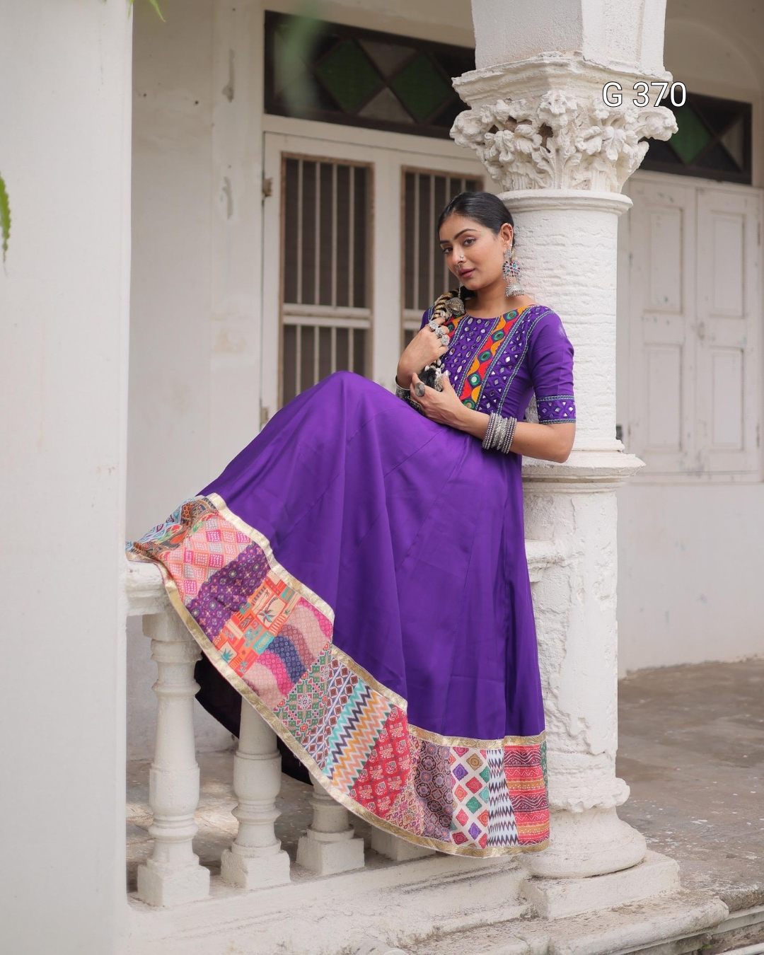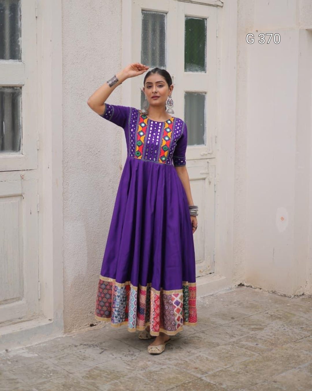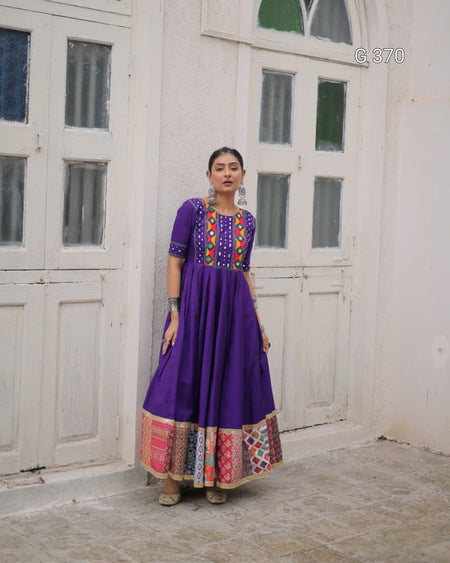 Roman Fabric Gown with Multicolor Thread & Mirror Work – G 370