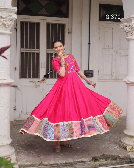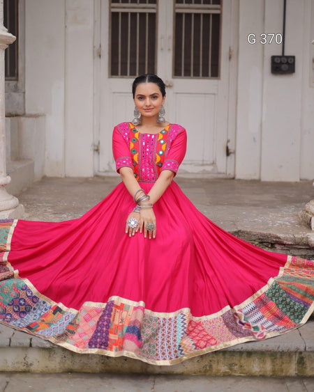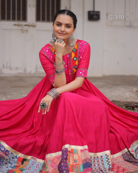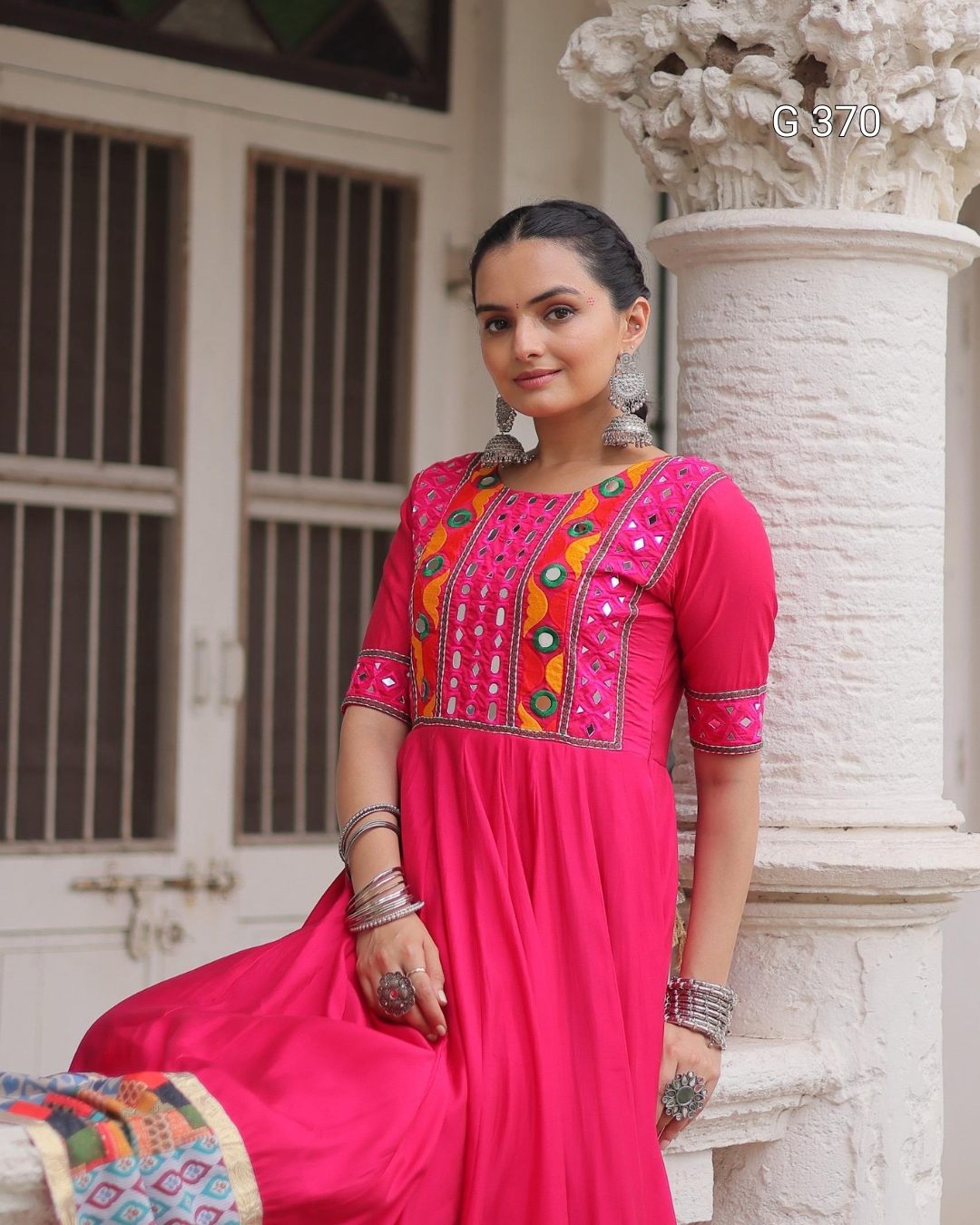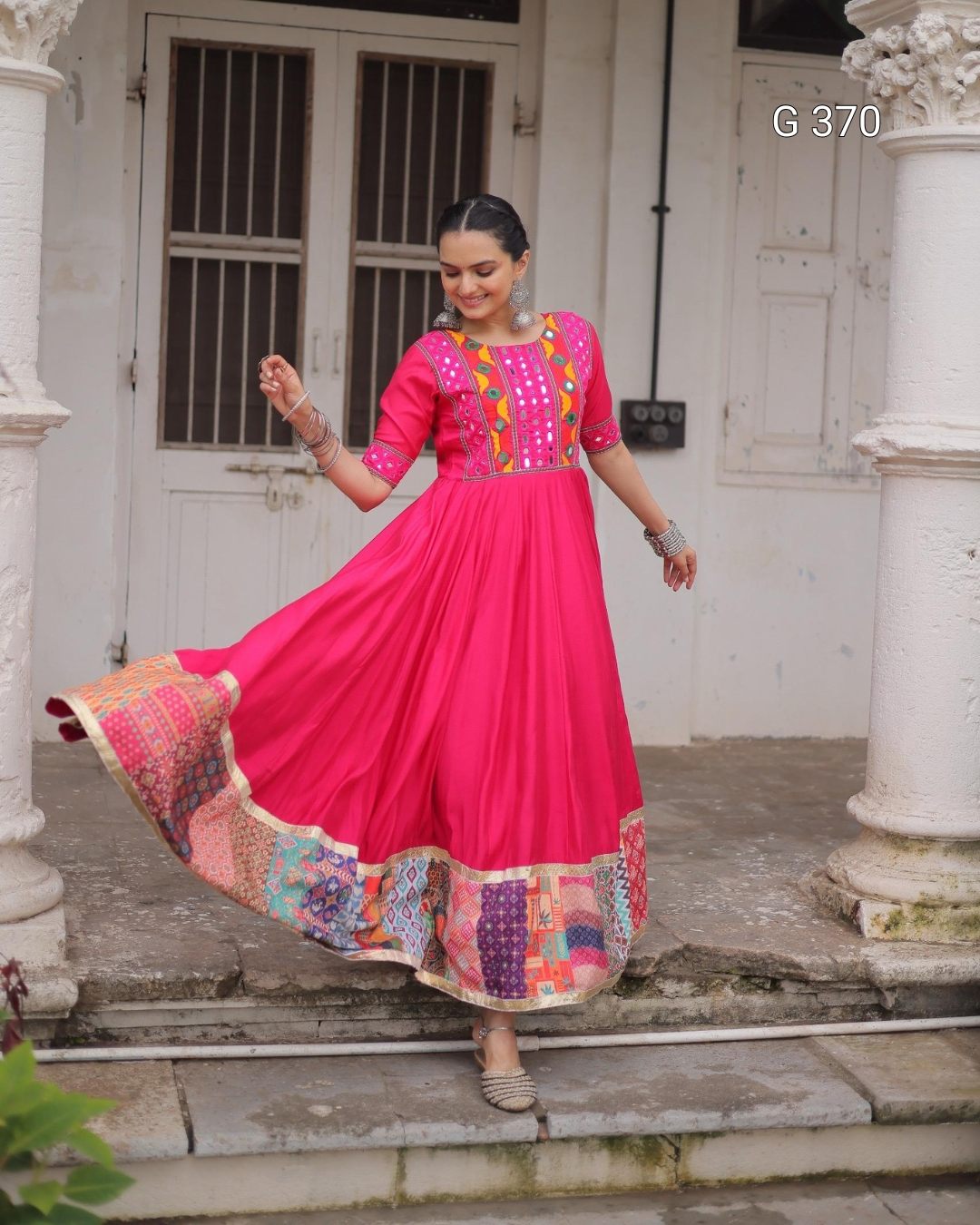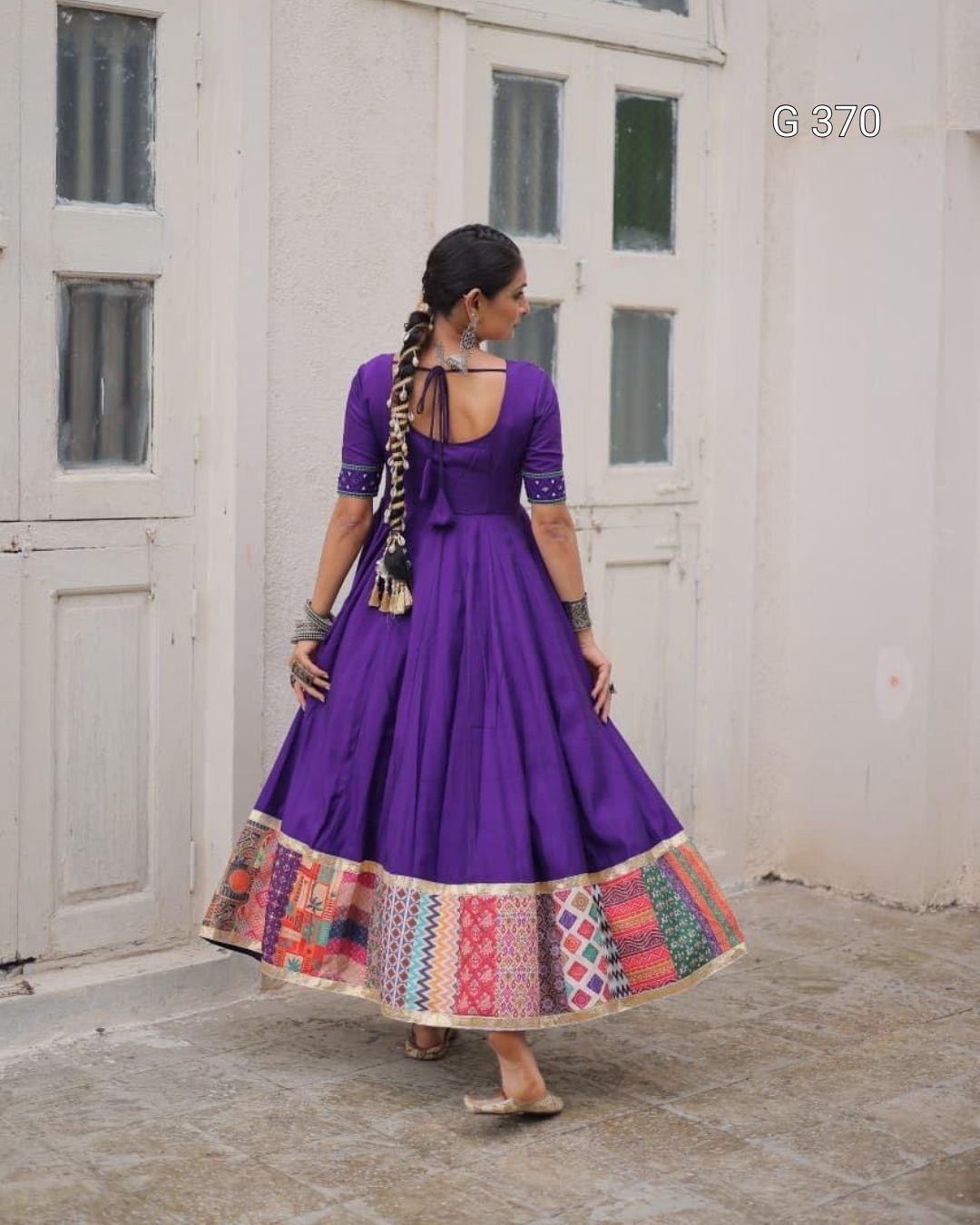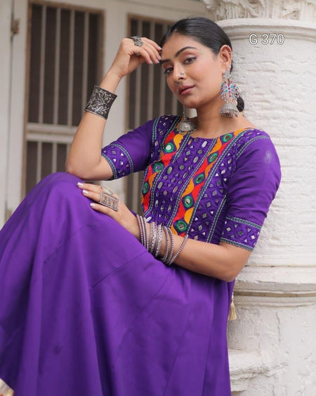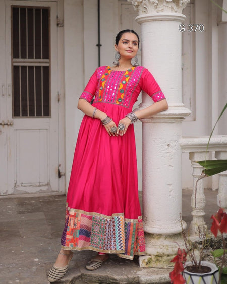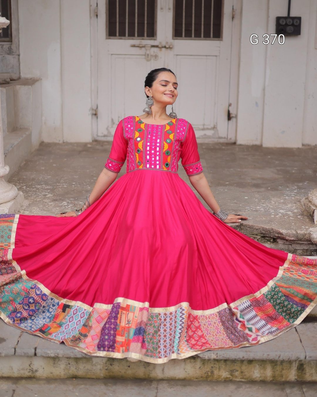 Roman Fabric Gown with Multicolor Thread & Mirror Work – G 370