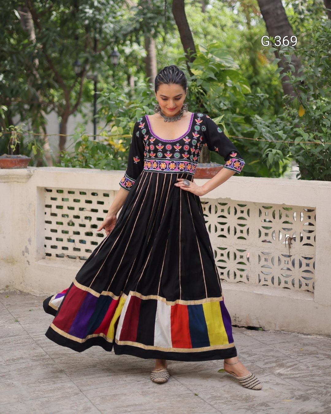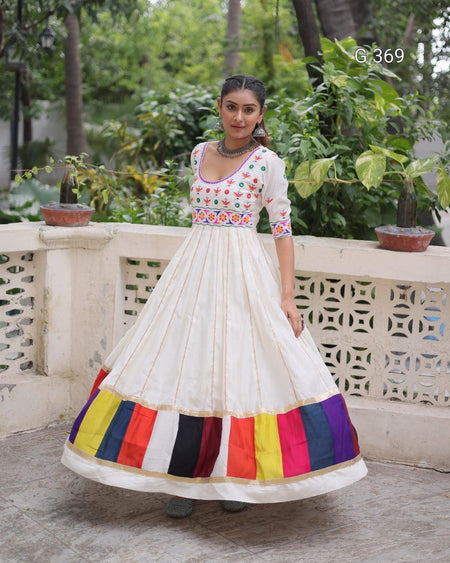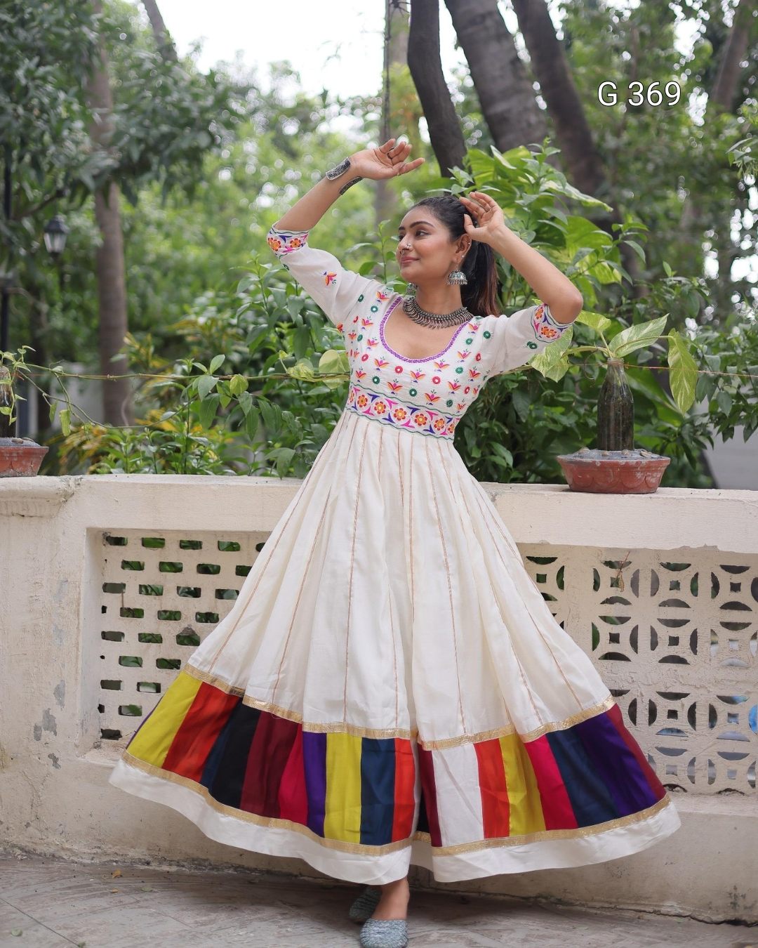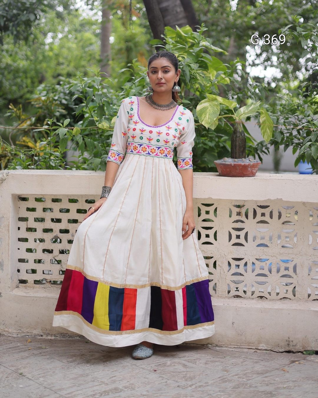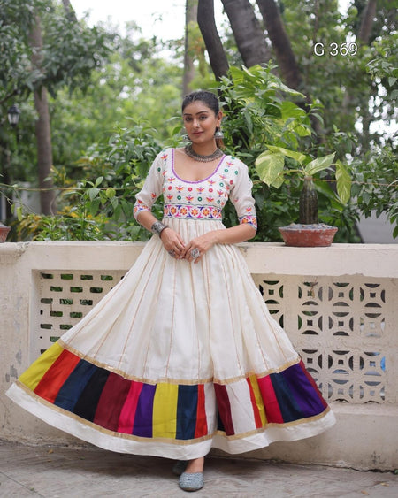 Roman Fabric Gown with Multicolor Thread Work & Gota Lace – G 369