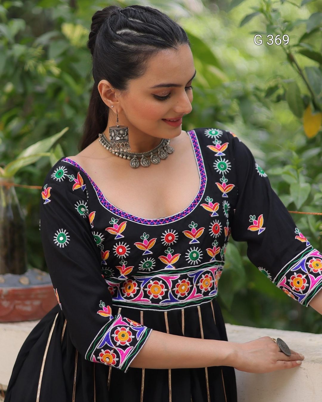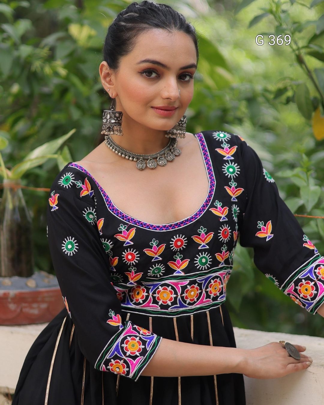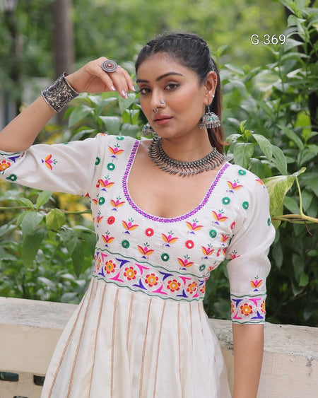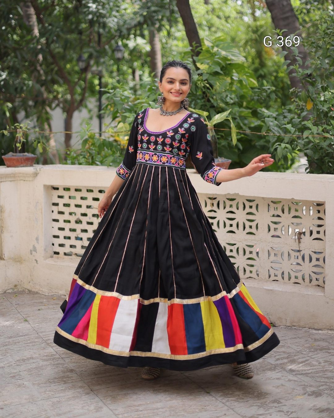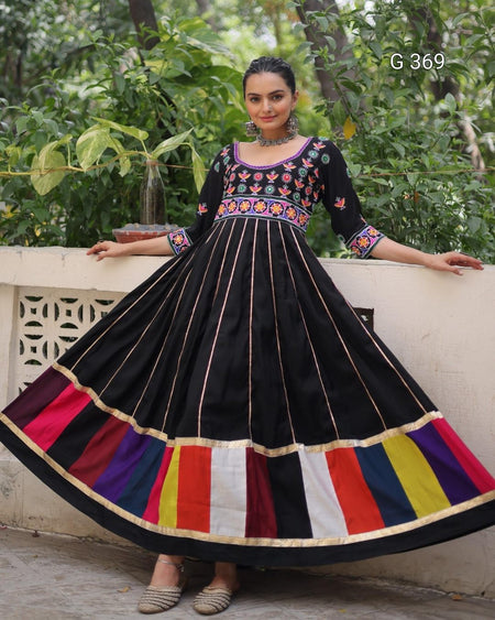 Roman Fabric Gown with Multicolor Thread Work & Gota Lace – G 369