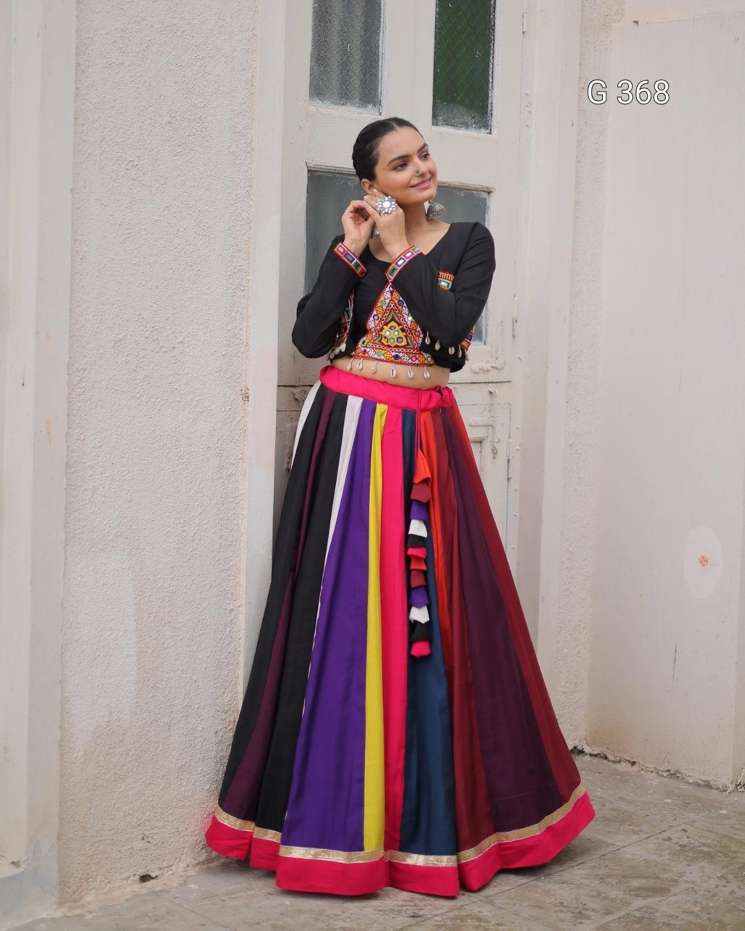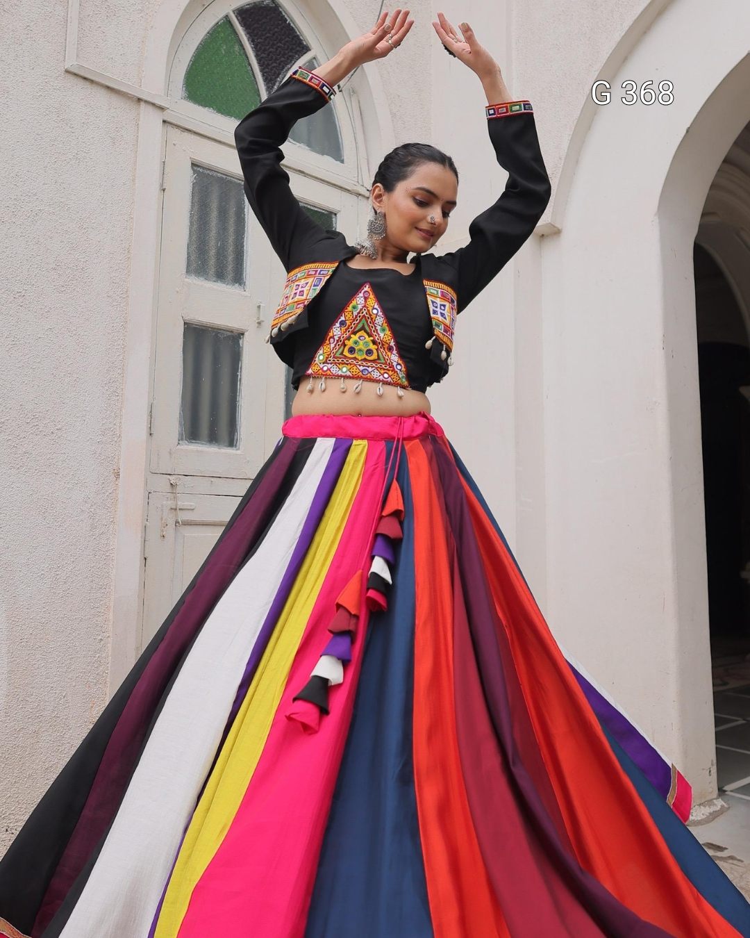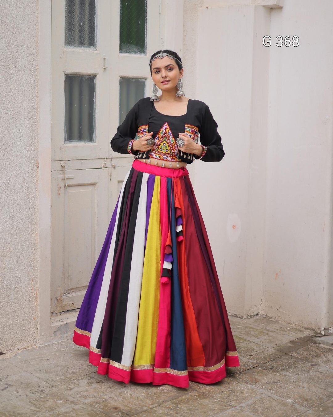 Roman Fabric Lehenga with Lace Work & Gamthi Embroidered Koti – G 368 Multi
