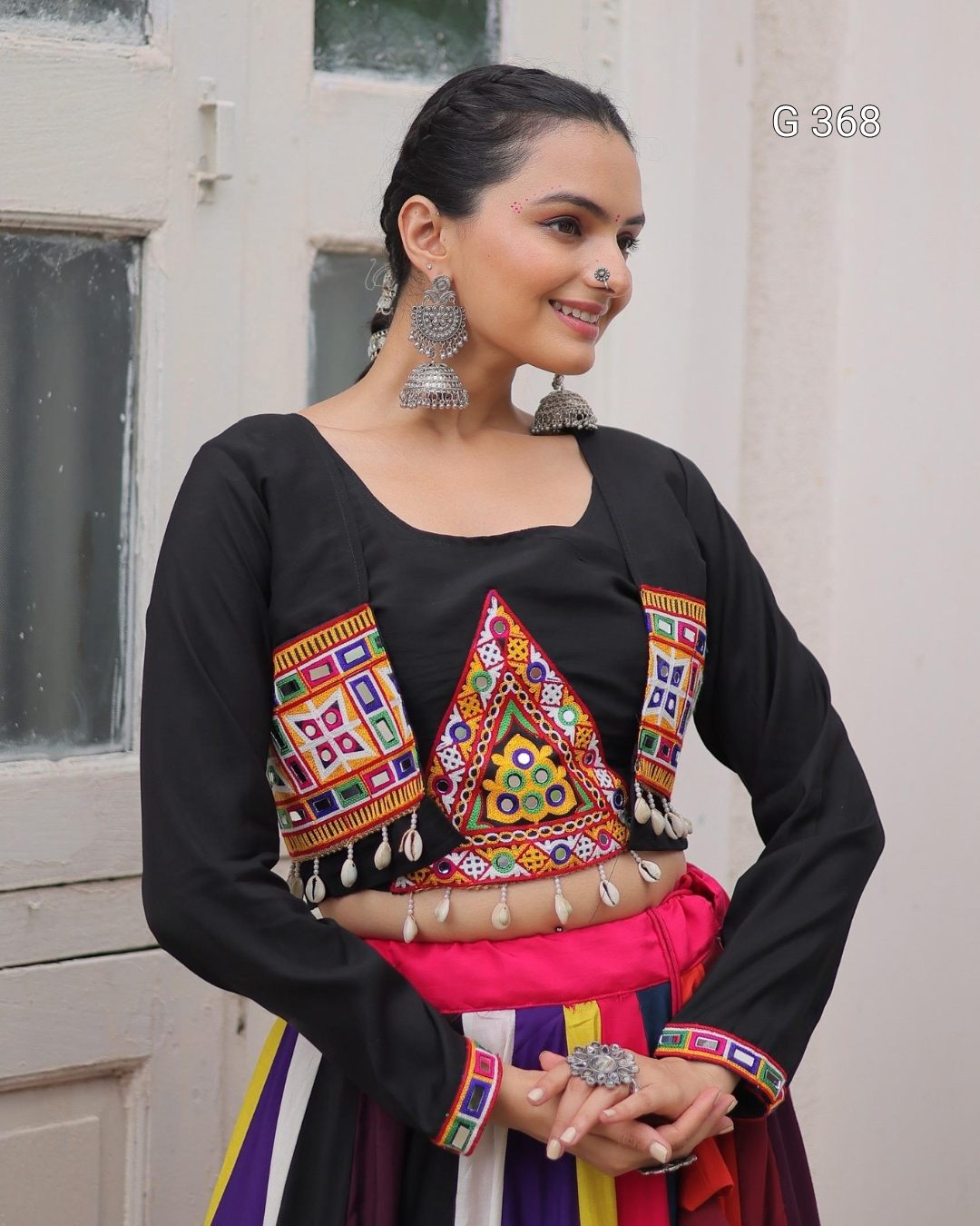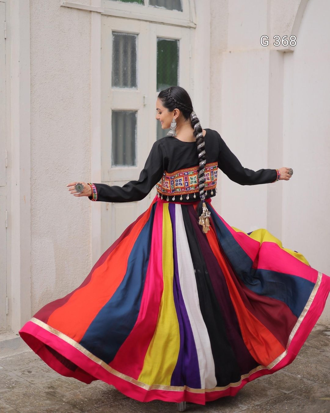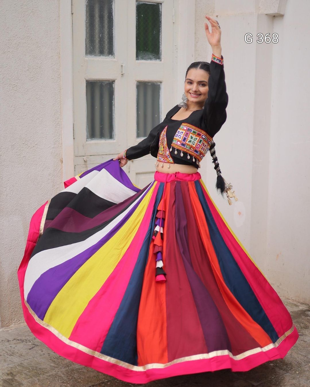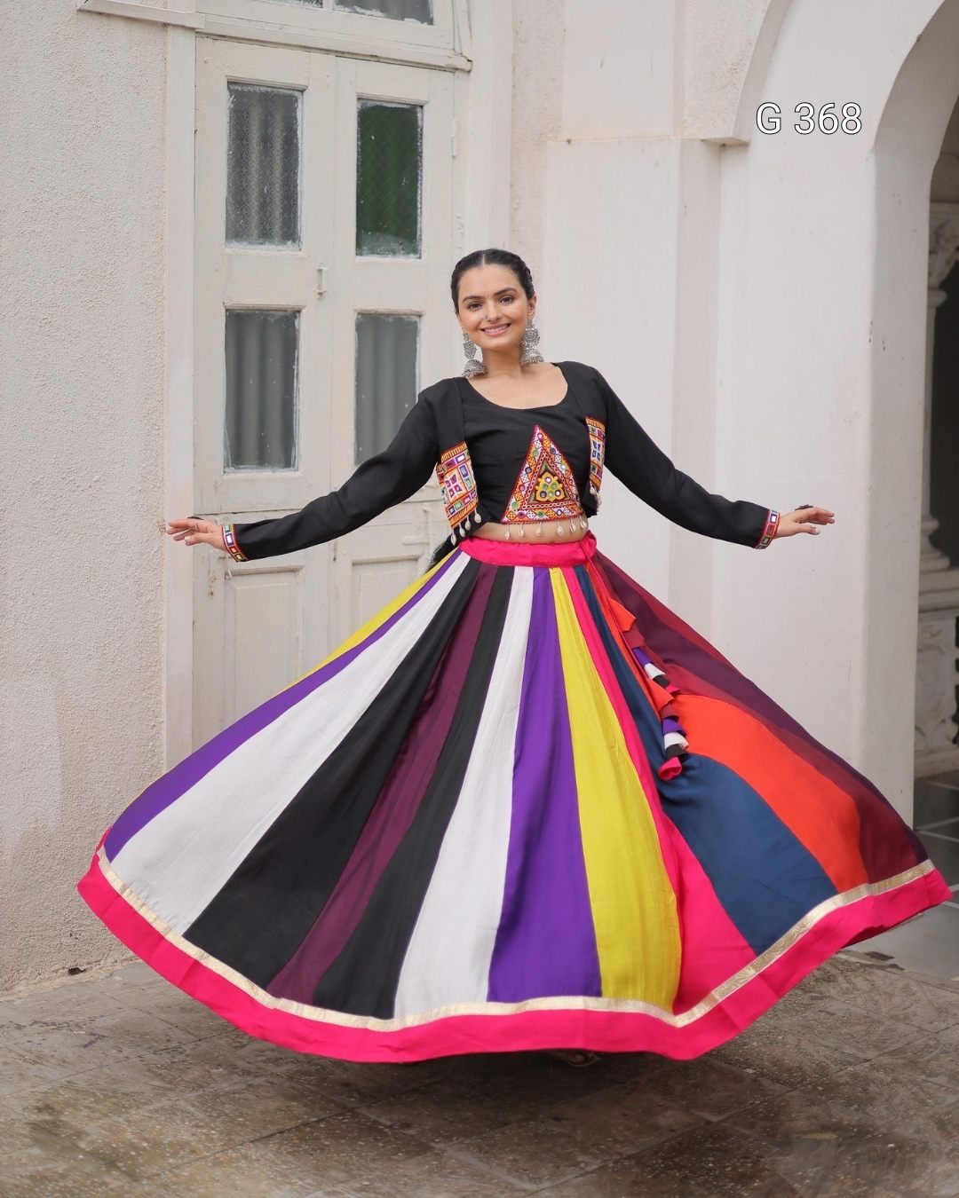 Roman Fabric Lehenga with Lace Work & Gamthi Embroidered Koti – G 368 Multi