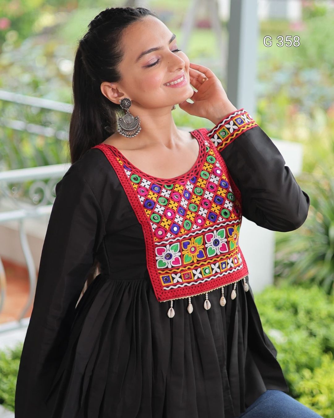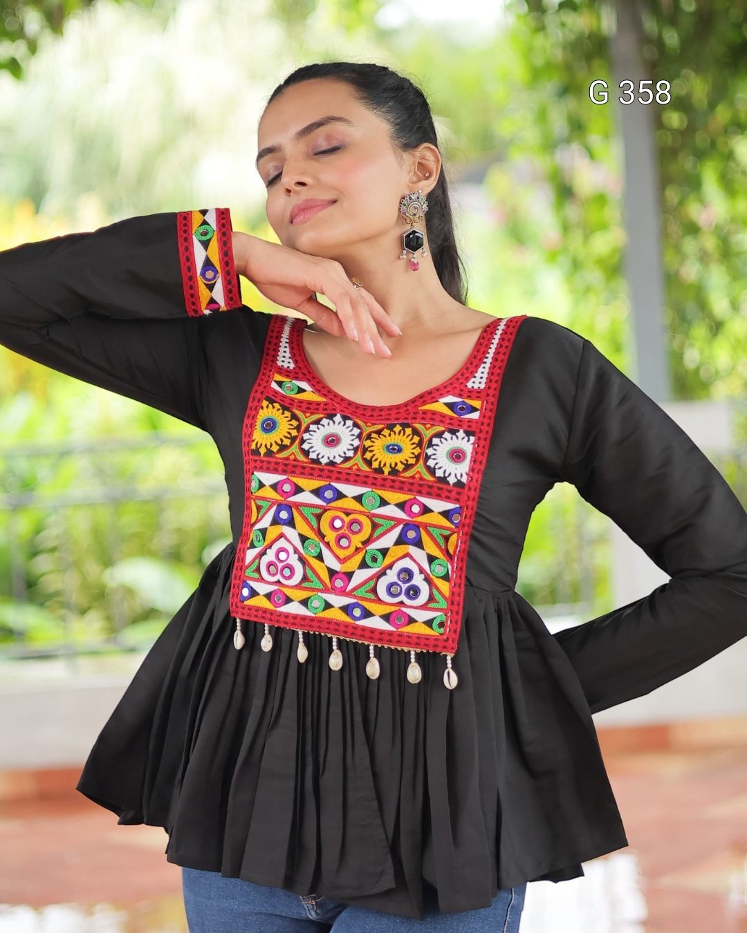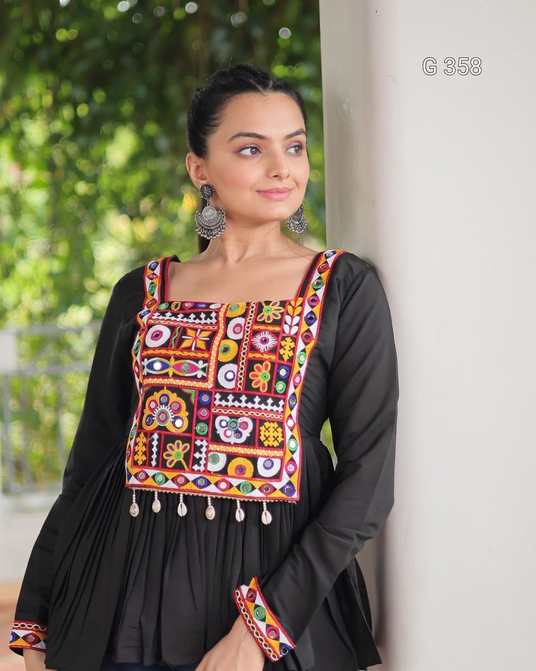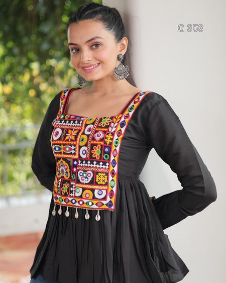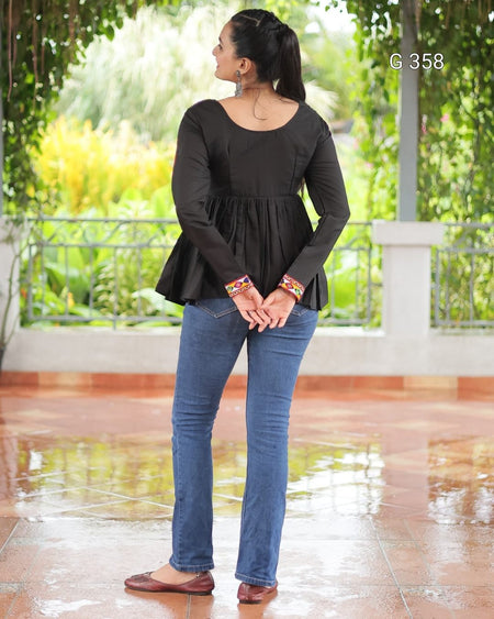 Roman Fabric Top with Kutchi Gamthi Work – G 358 Black