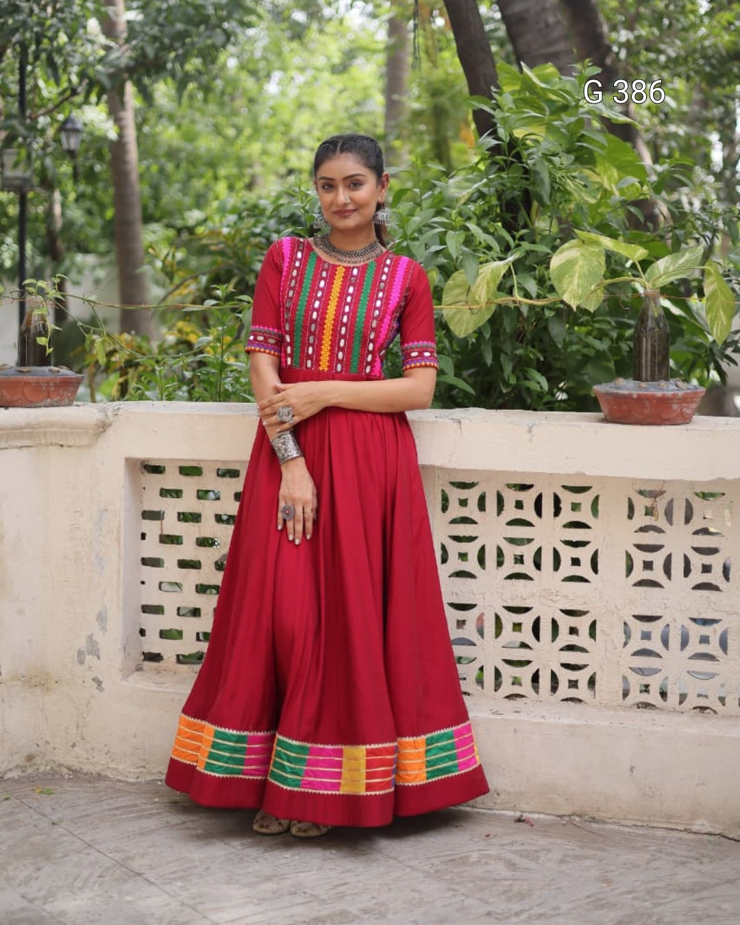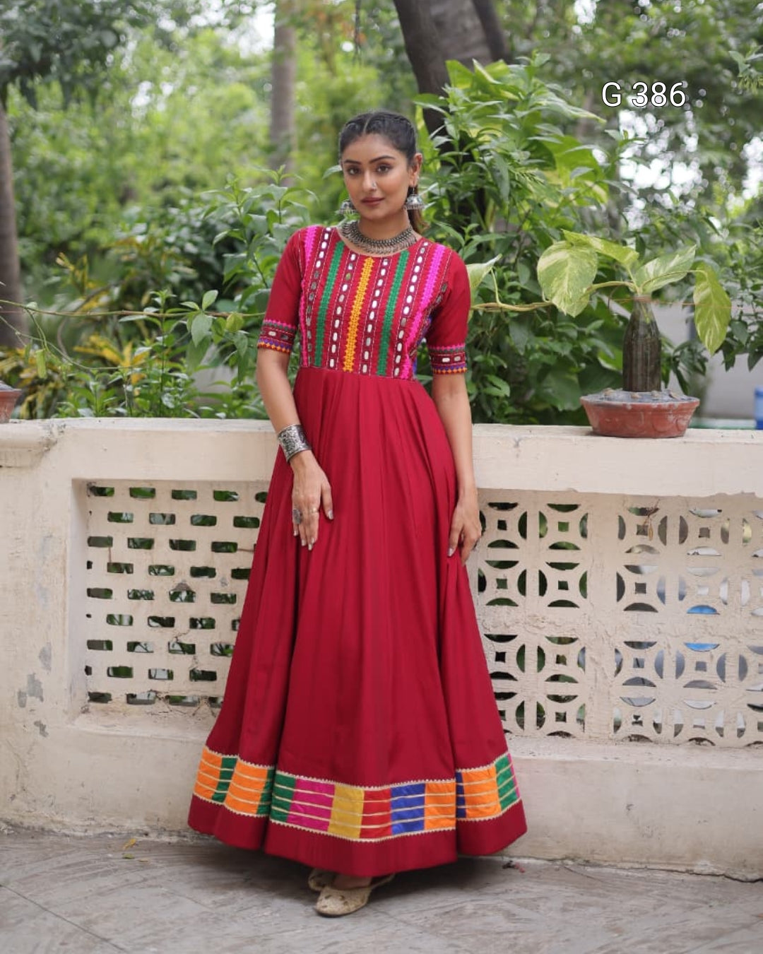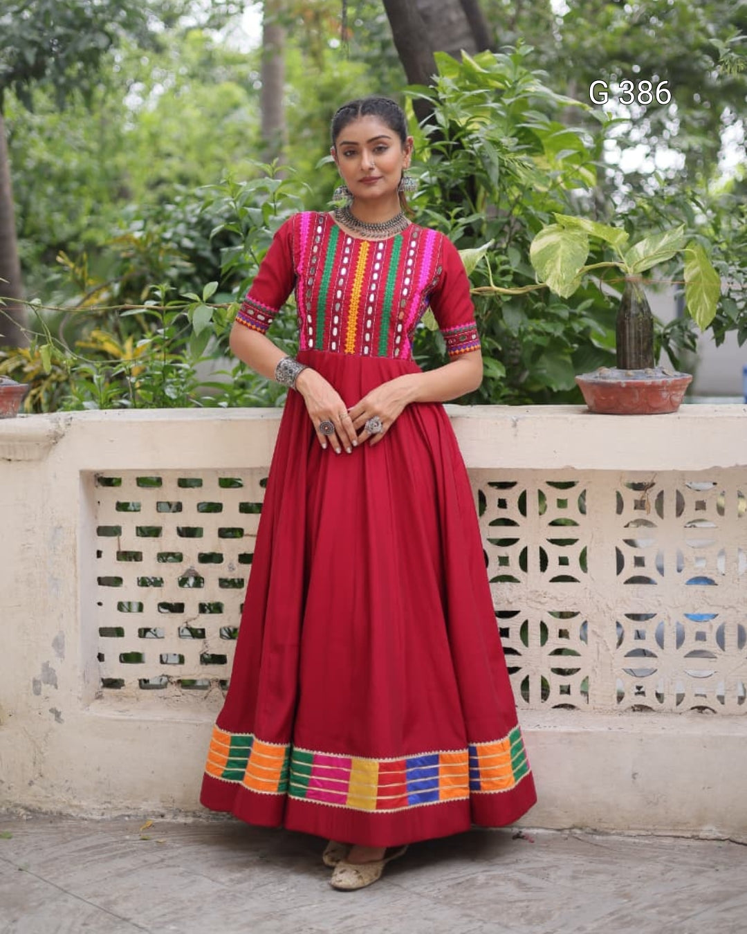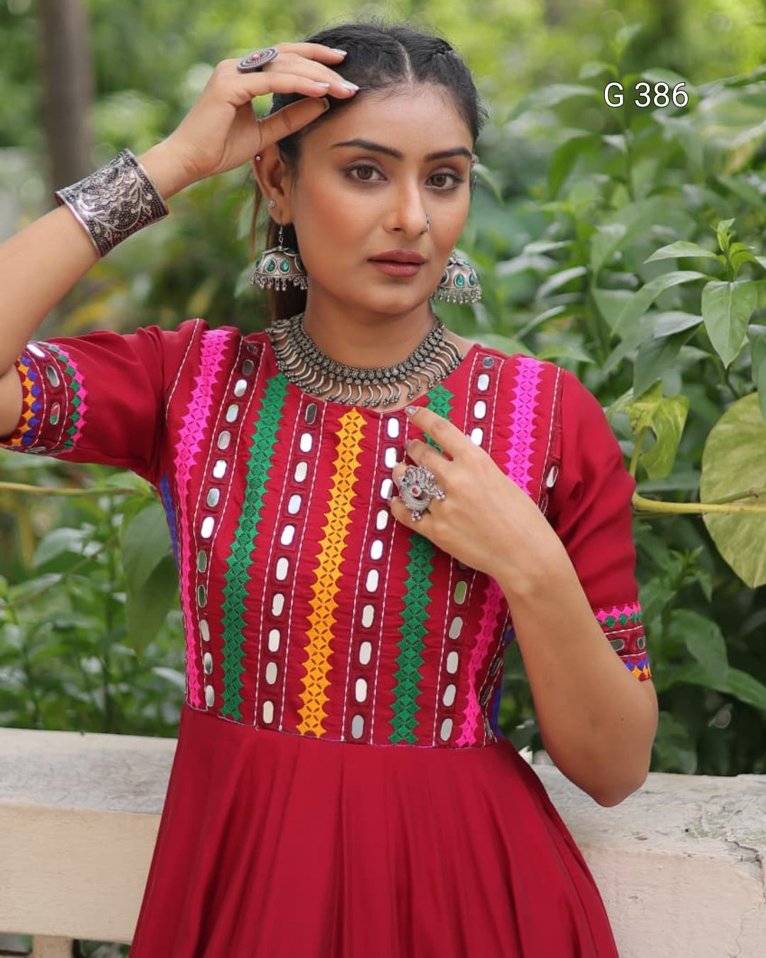 Roman Gown with Multicolor Thread & Mirror Work – G 386