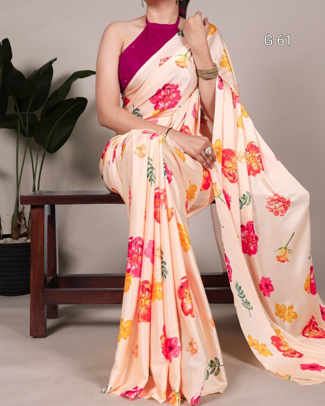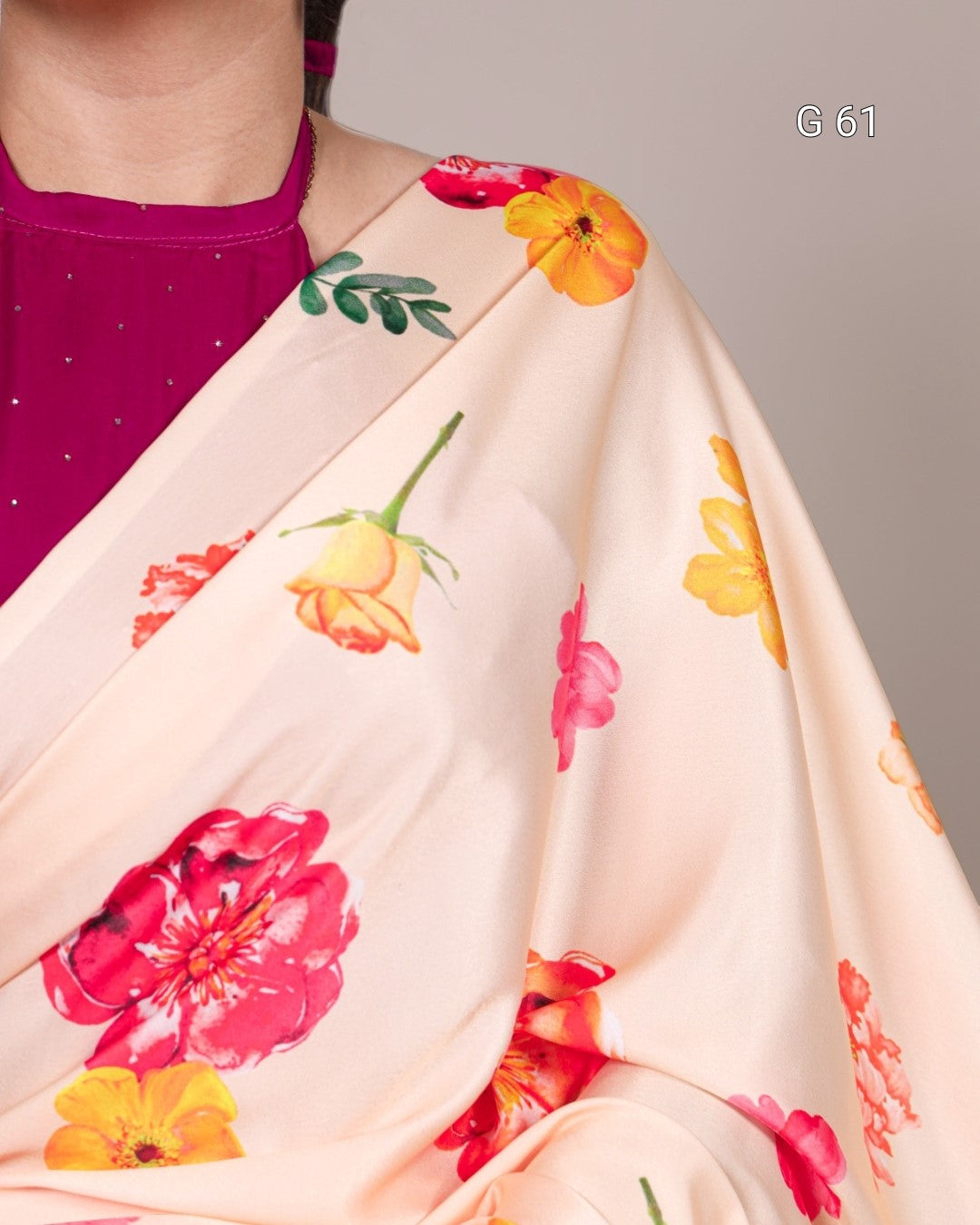 Satin Silk Printed Saree – G 61 Cream