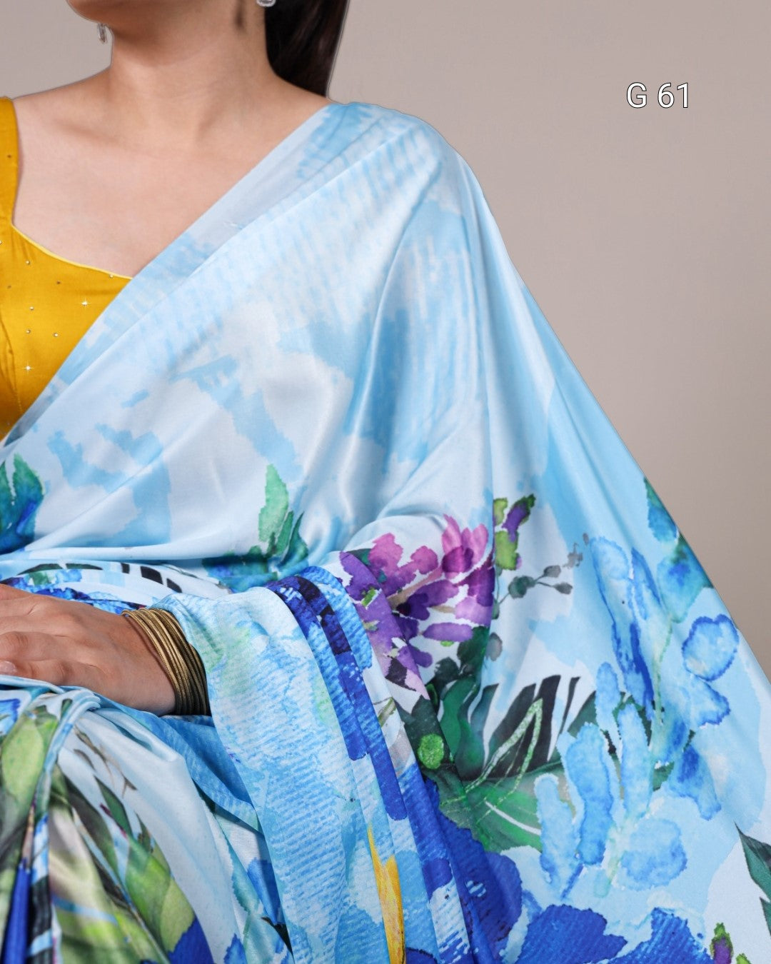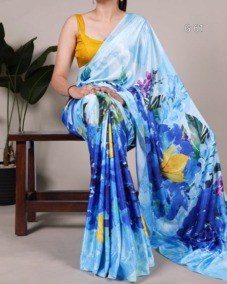 Satin Silk Printed Saree – G 61 Sky Blue