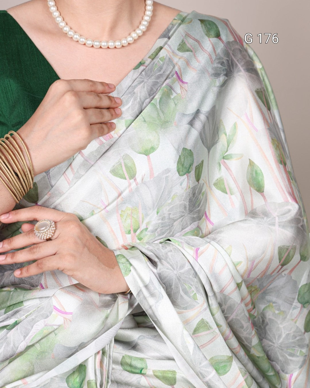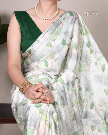 Sea Green Satin Silk Saree with Floral Print – G 176 Sea Green