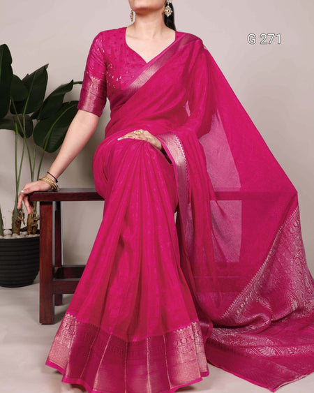 Self Printed Chinon Saree with Zari Weaving – G 271 Pink