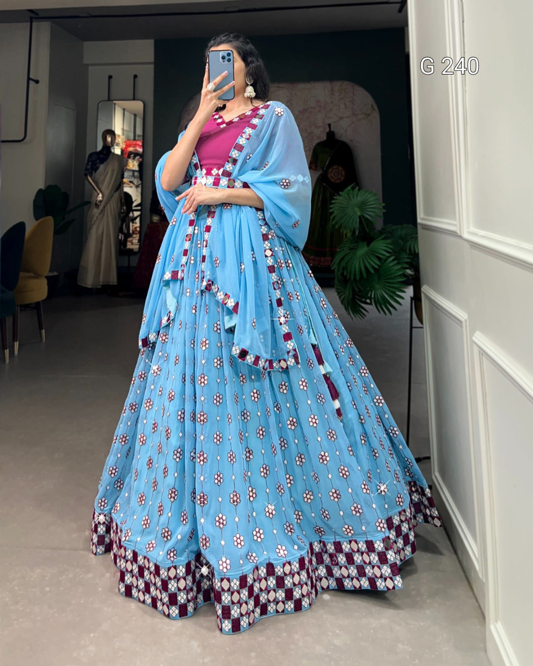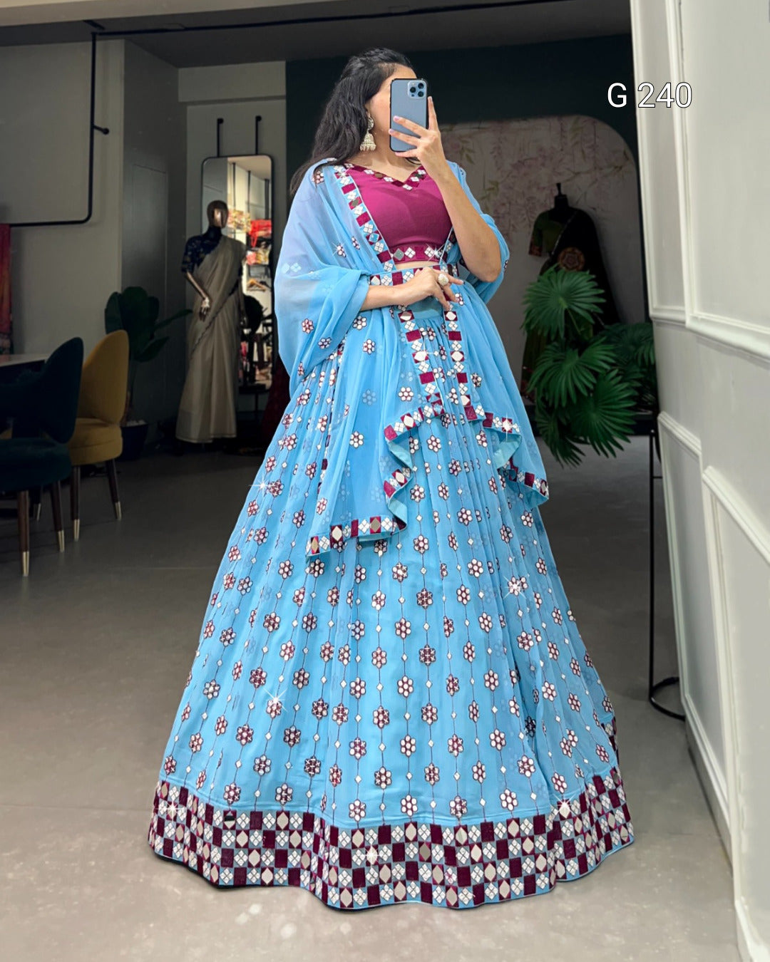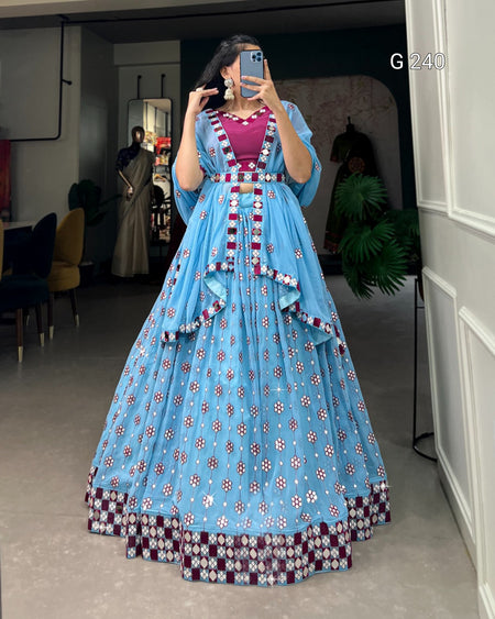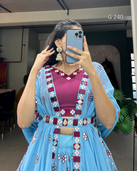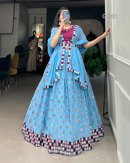 Sequins and Mirror Work Georgette Lehenga with Dupatta – G 240 Sky Blue