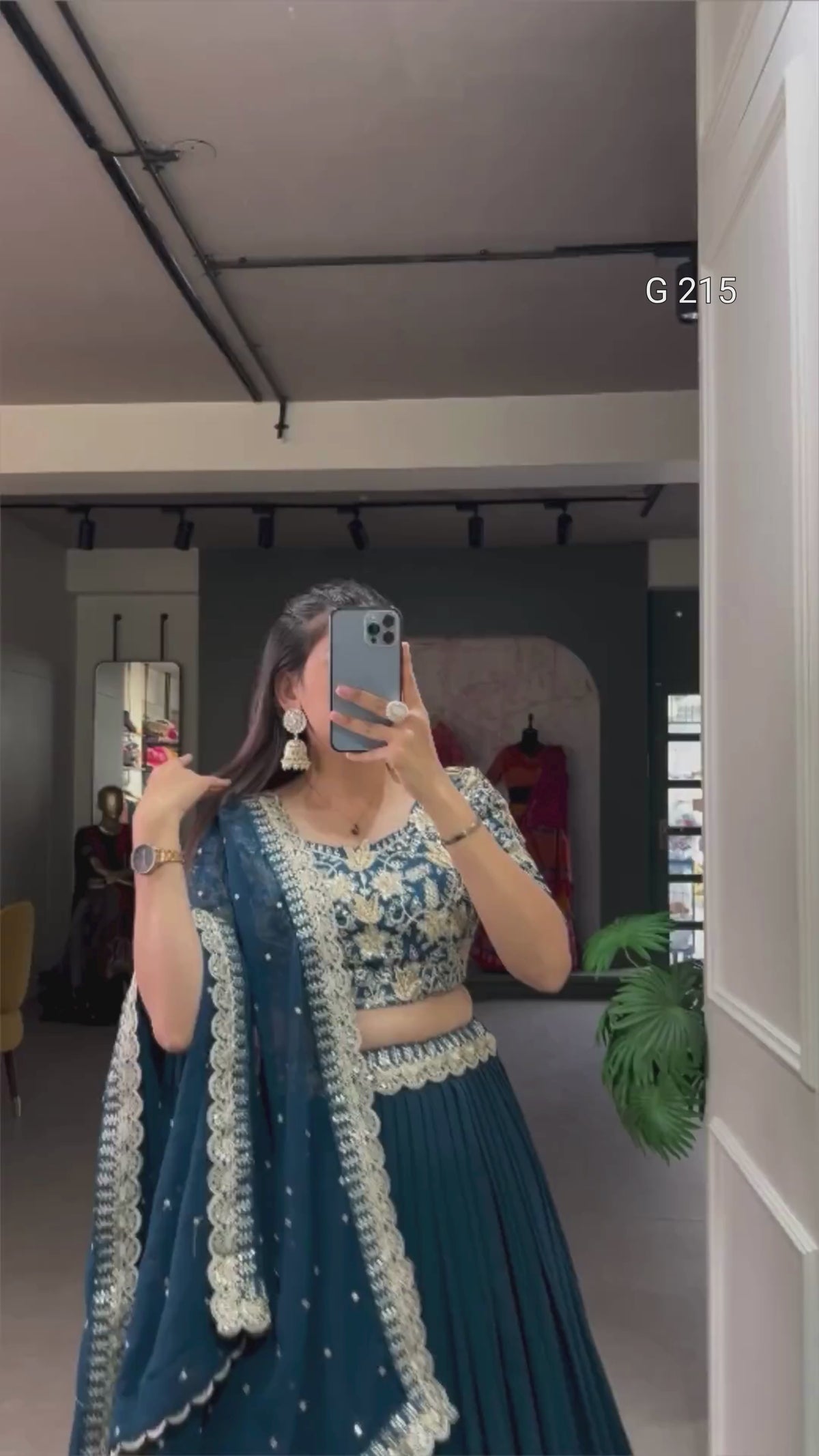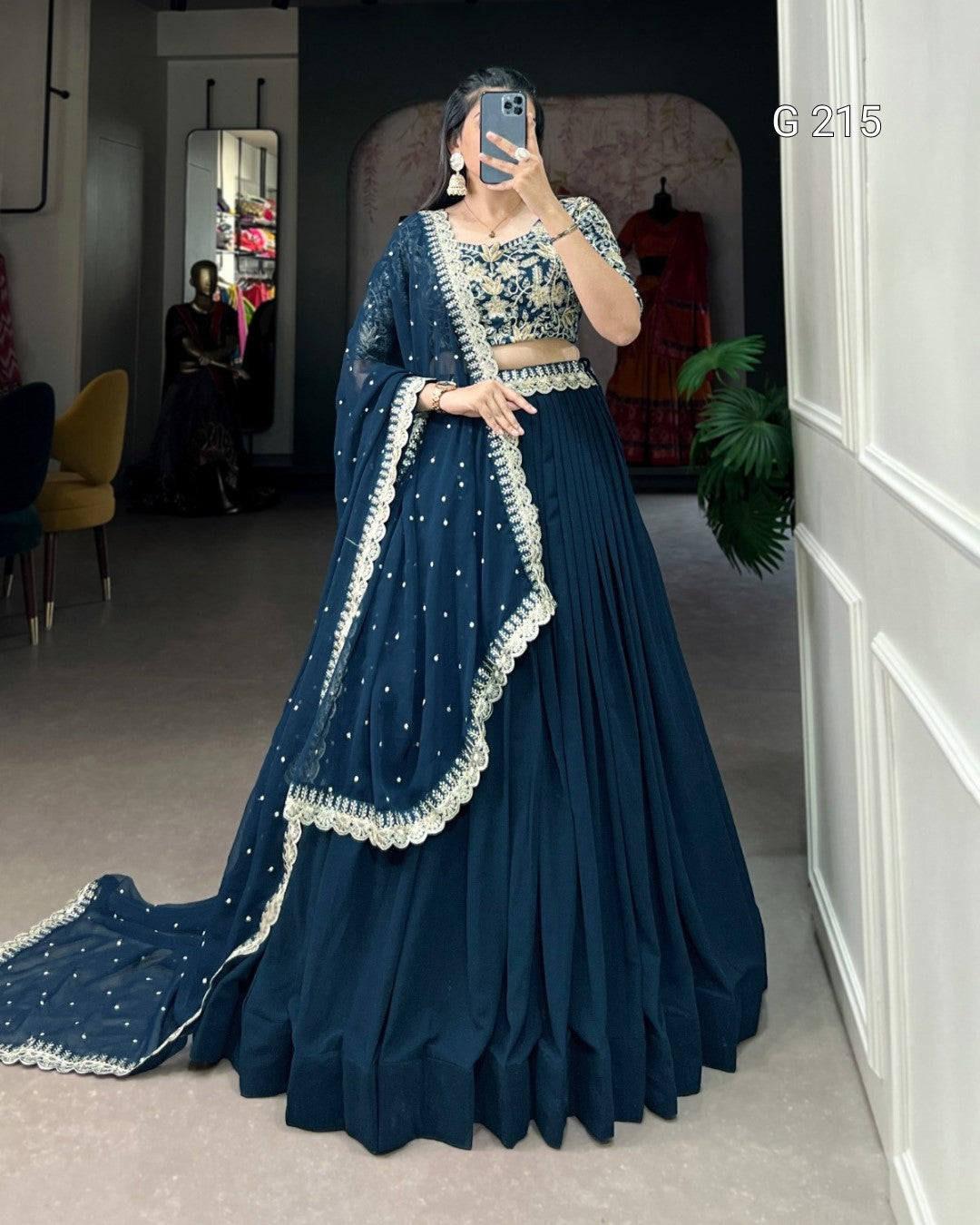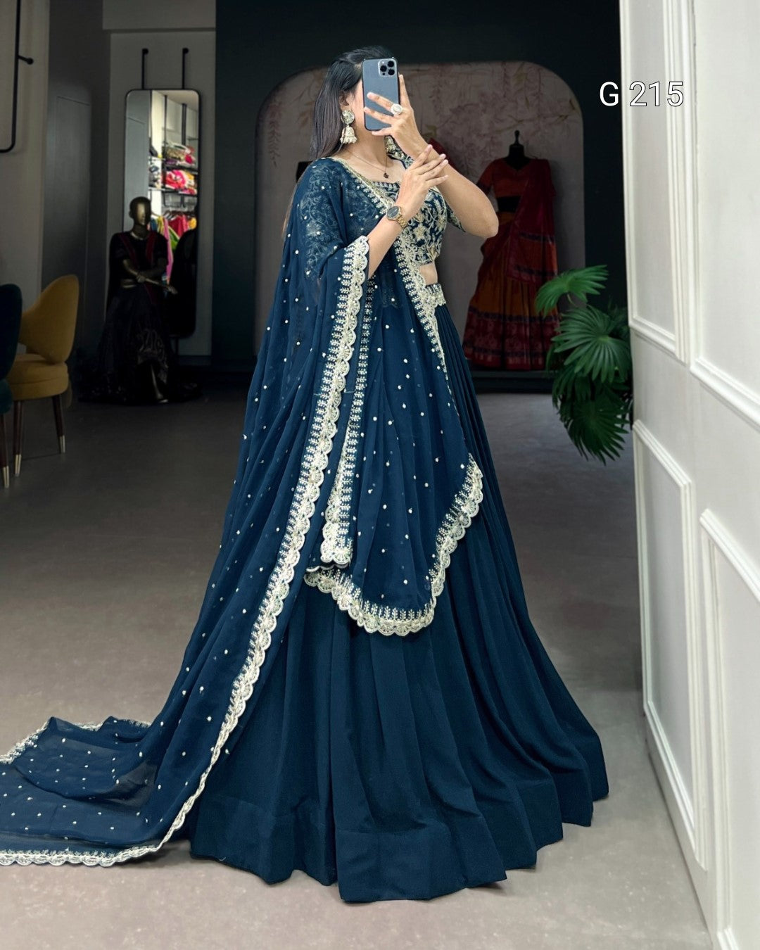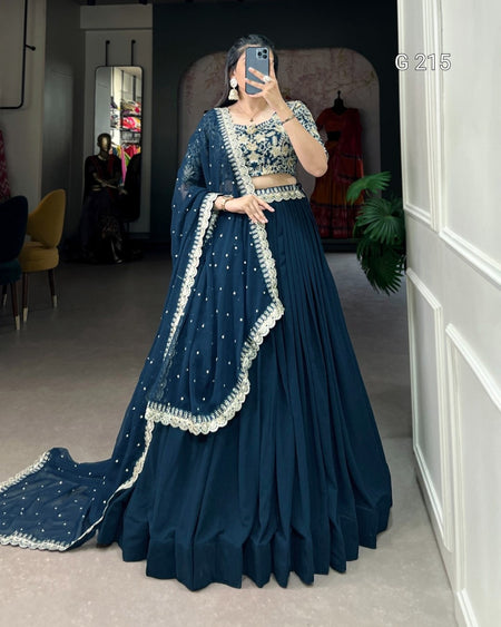 Sequins and Thread Embroidery Georgette Lehenga with Belt – G 215 Teal