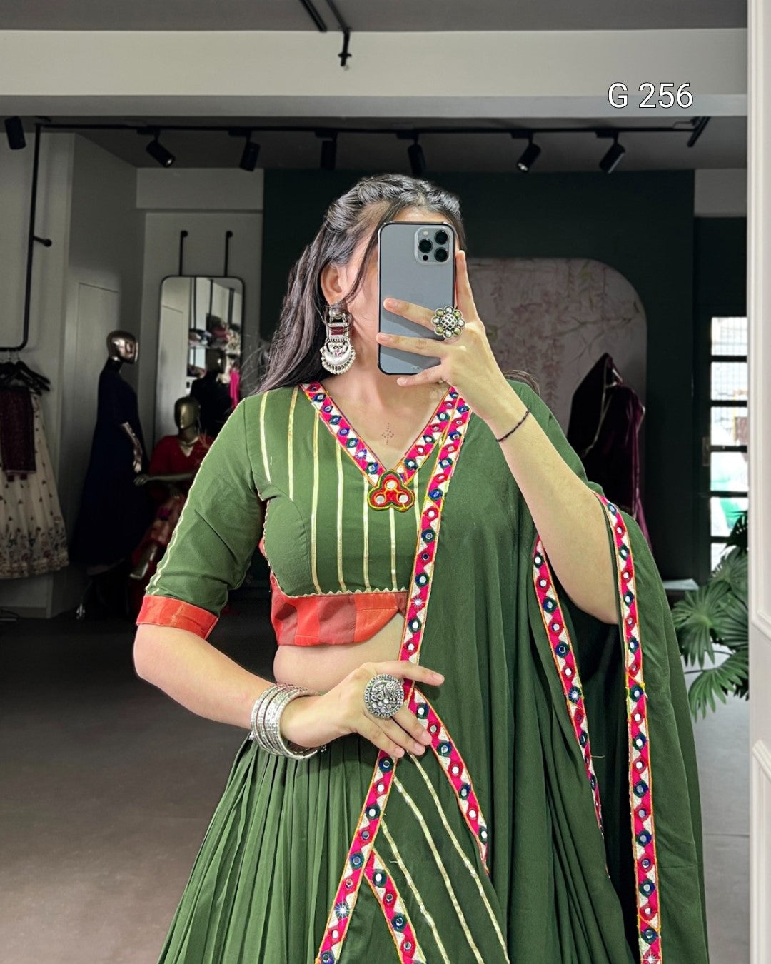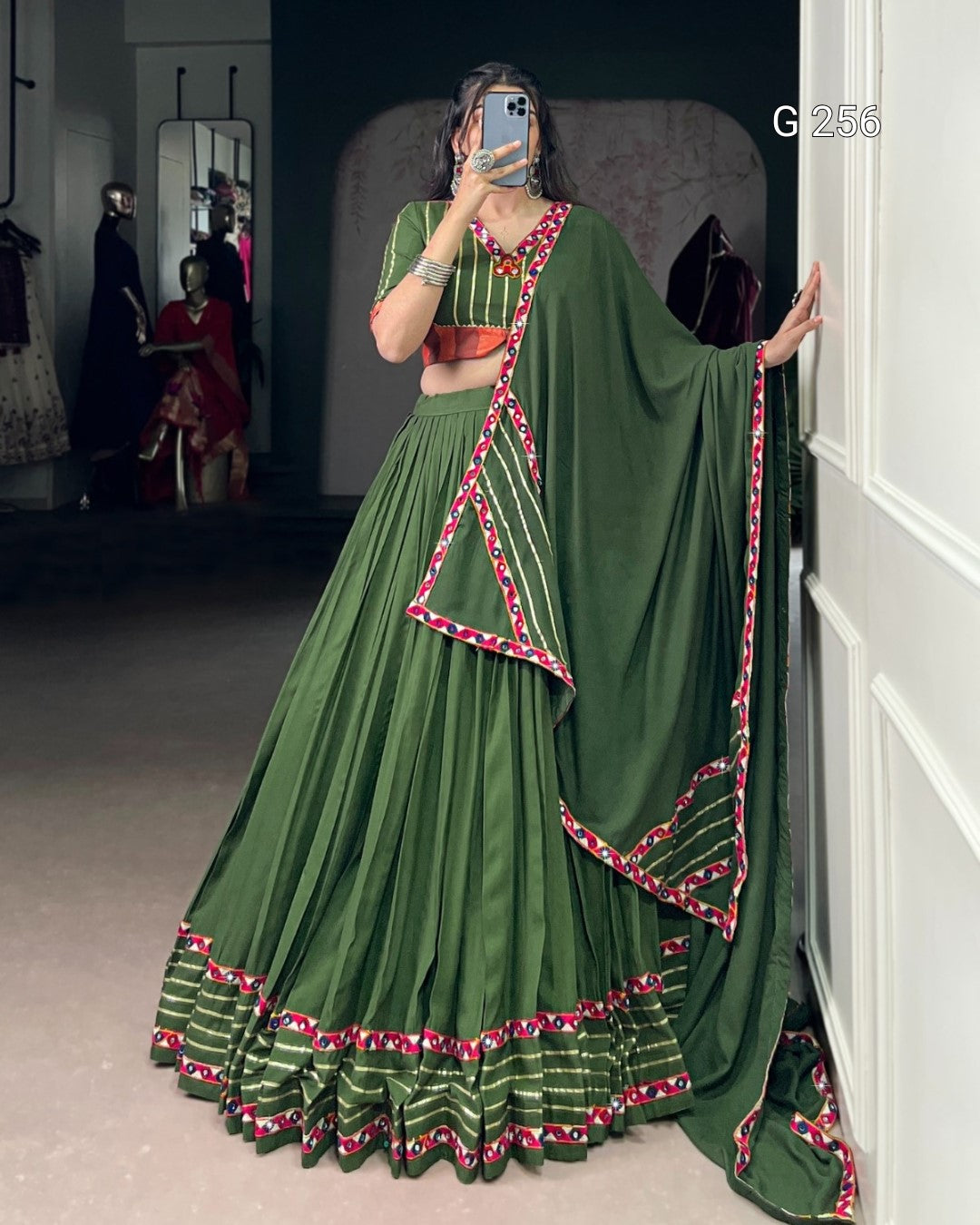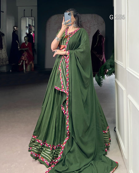 Sequins & Thread Embroidery Gold Crush Lehenga with Lace Border – G 256 Mehendi