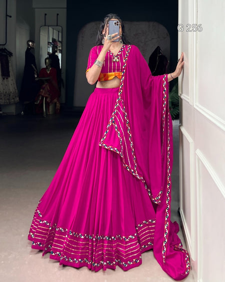 Sequins & Thread Embroidery Gold Crush Lehenga with Lace Border – G 256 Pink