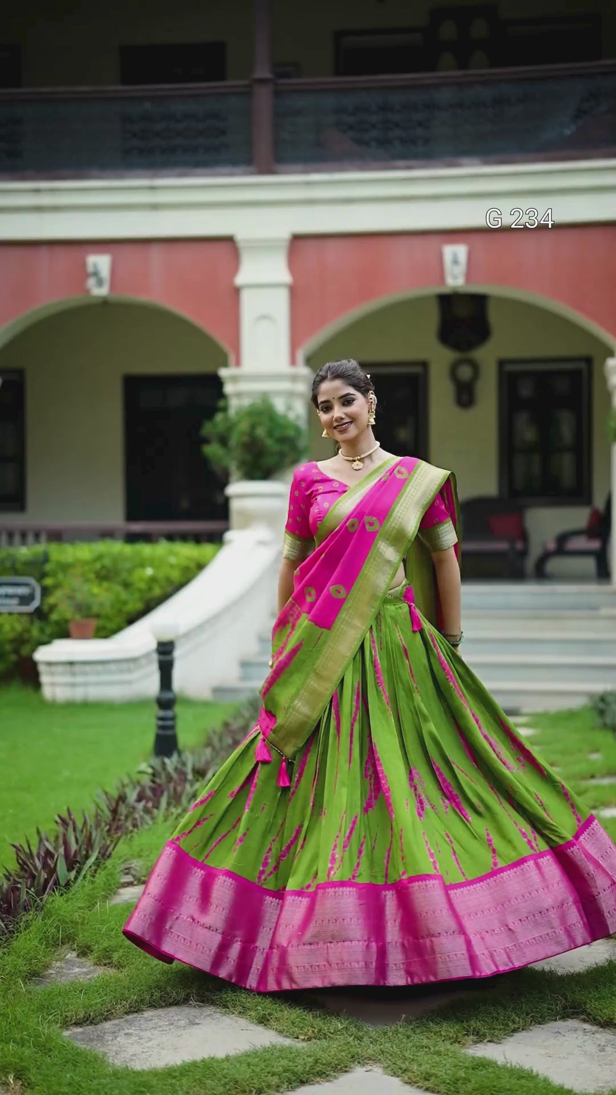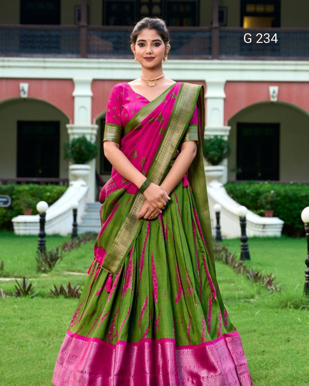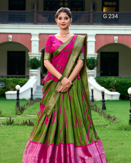 Shibori Print Dola Silk Lehenga with Zari Weaving Border – G 234 Pink