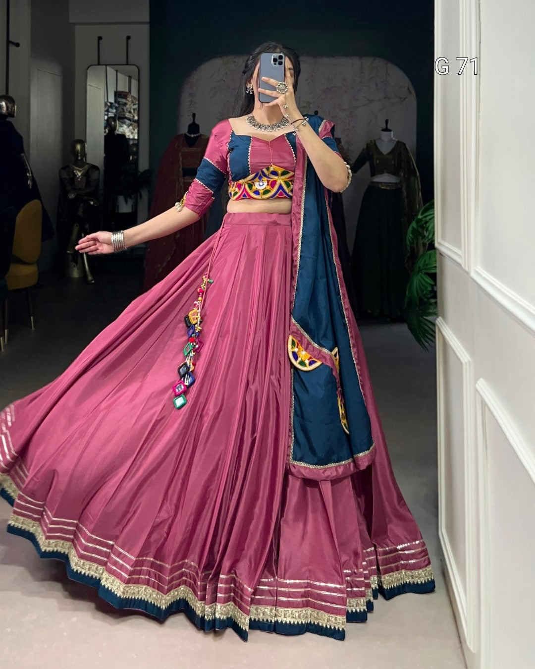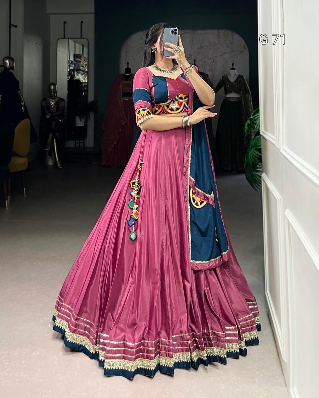 Blouse Work : Original Mirror Gamthi Work And Cowrie (Kodi) With Gotta patti Lace Touch Up