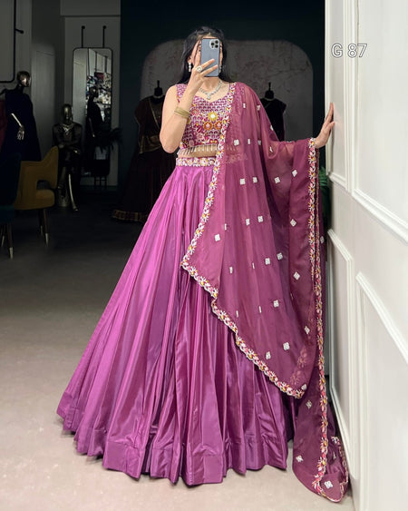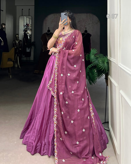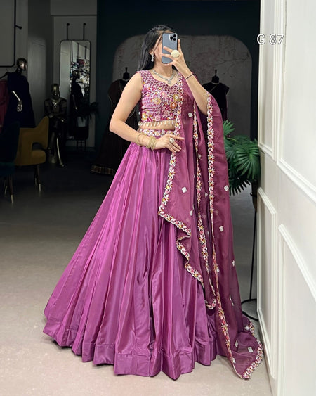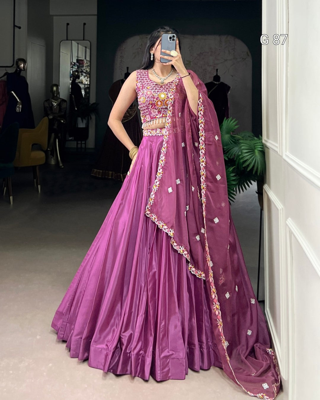 Silk Crepe Lehenga with Sequins & Thread Embroidery Work – G 87 Magenta pink