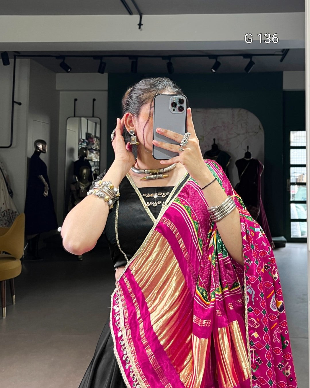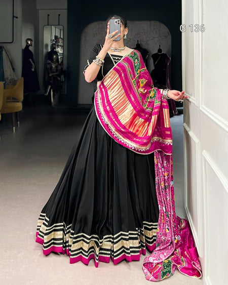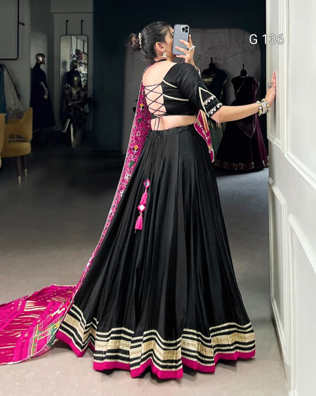 Silk Georgette Lehenga with Original Mirror Lace Touch Up & Digital Print Dupatta – G 136 Black