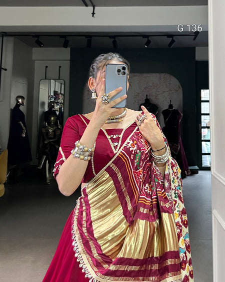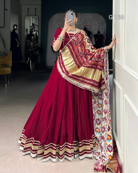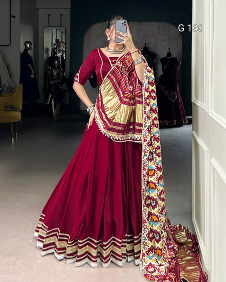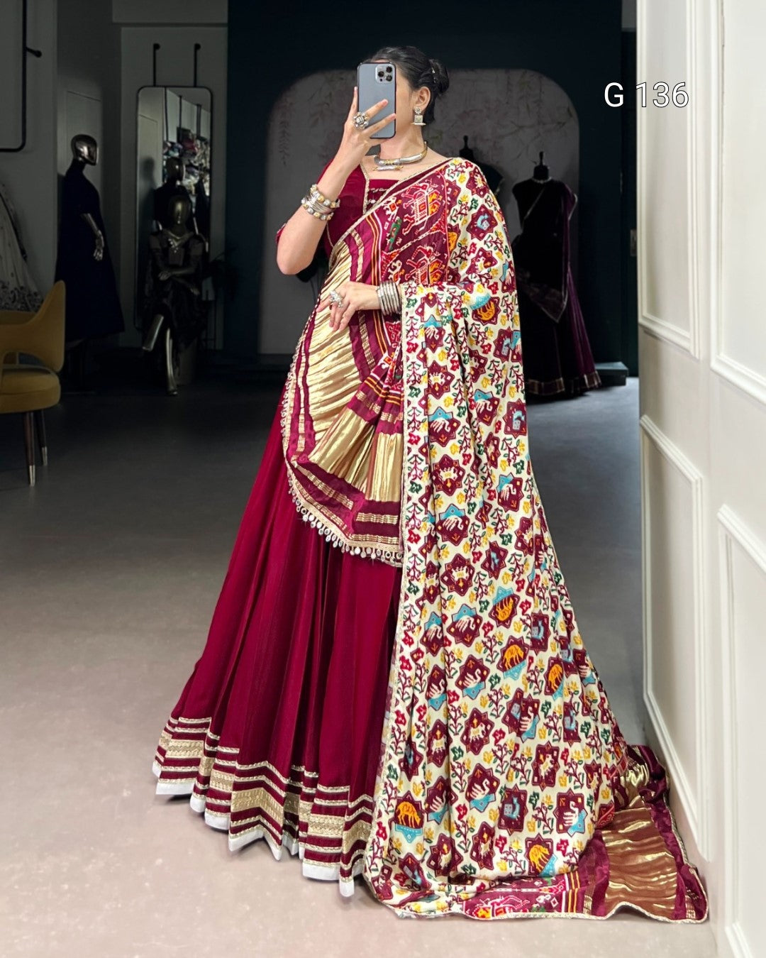 Silk Georgette Lehenga with Original Mirror Lace Touch Up & Digital Print Dupatta – G 136 Maroon
