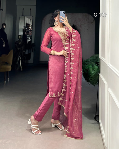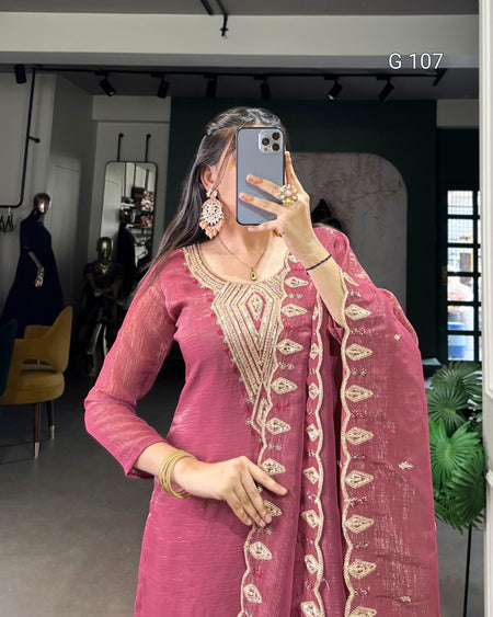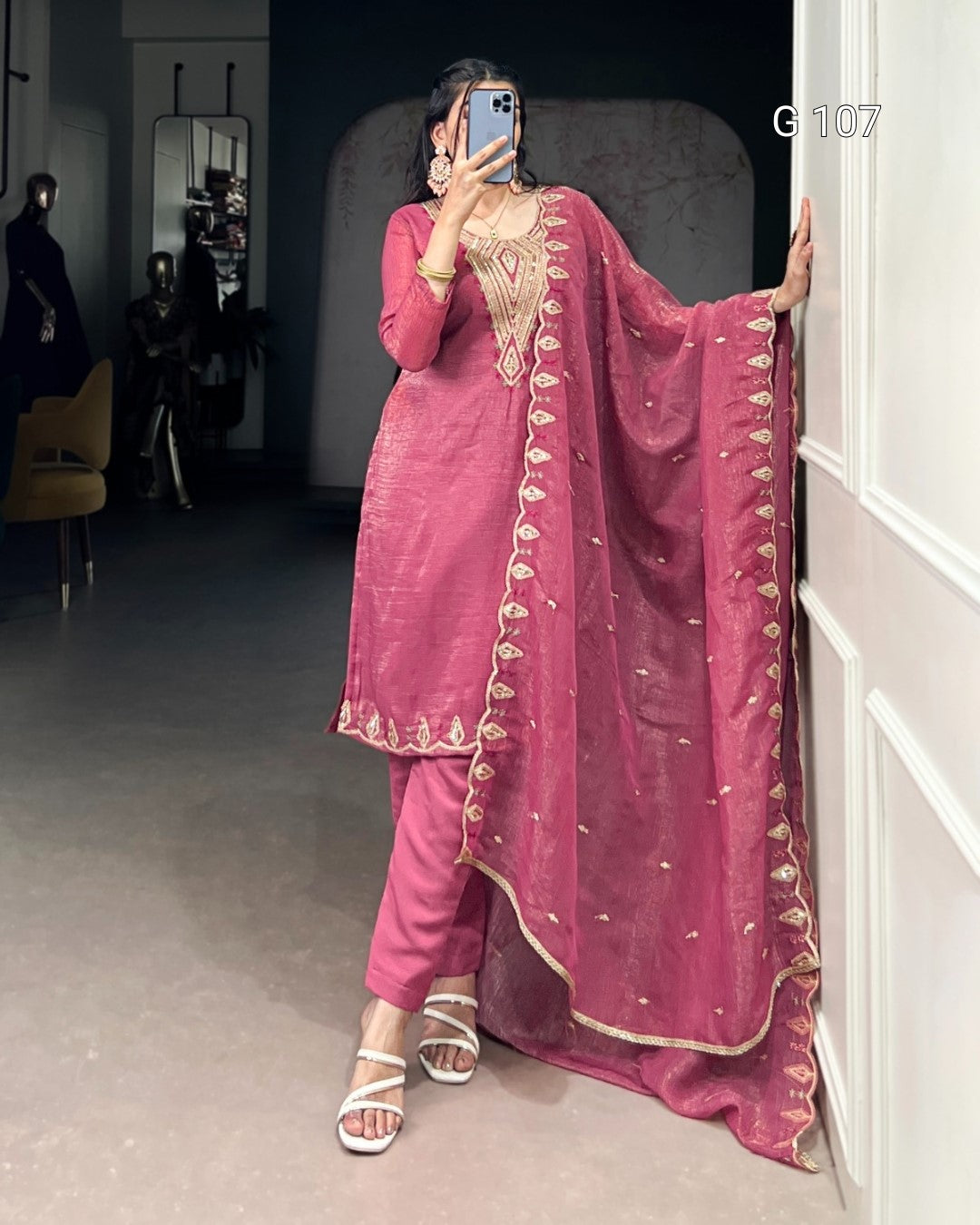 Silver Glory Top with Sequins & Thread Embroidery – G 107 Pink