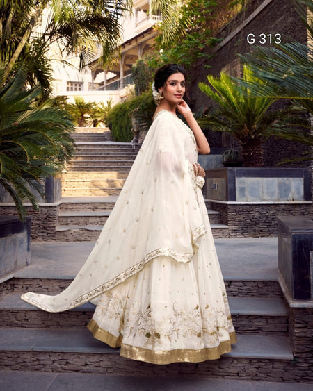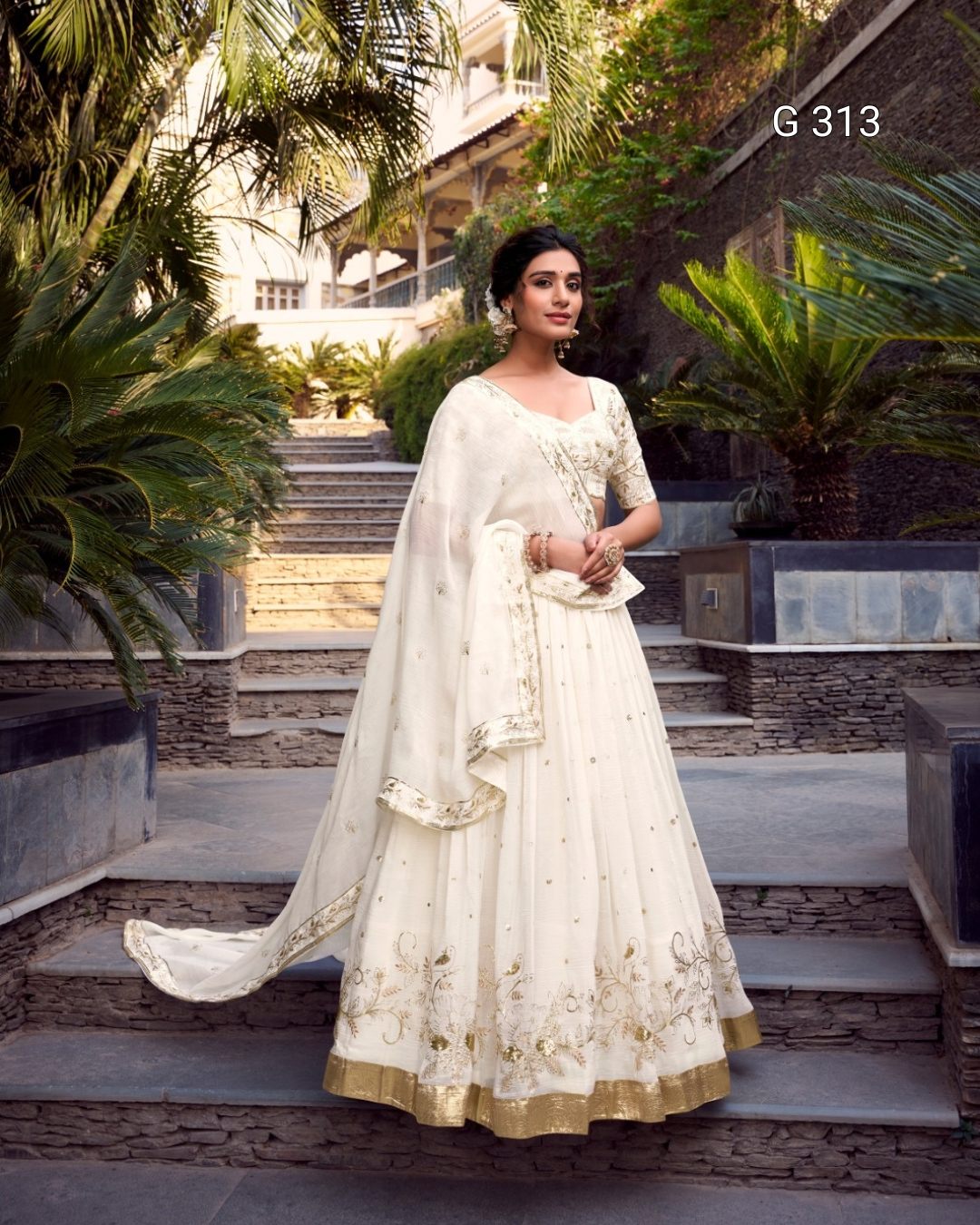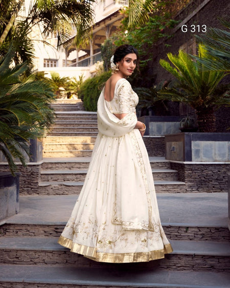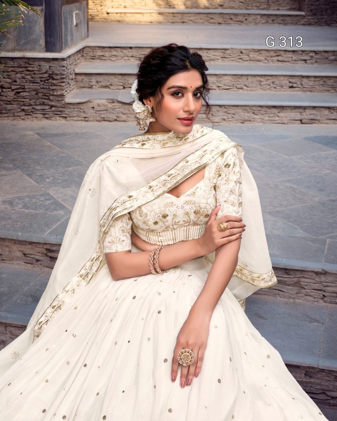 Silver Glosy Lehenga with Sequins & Foil Work – G 313 Off White