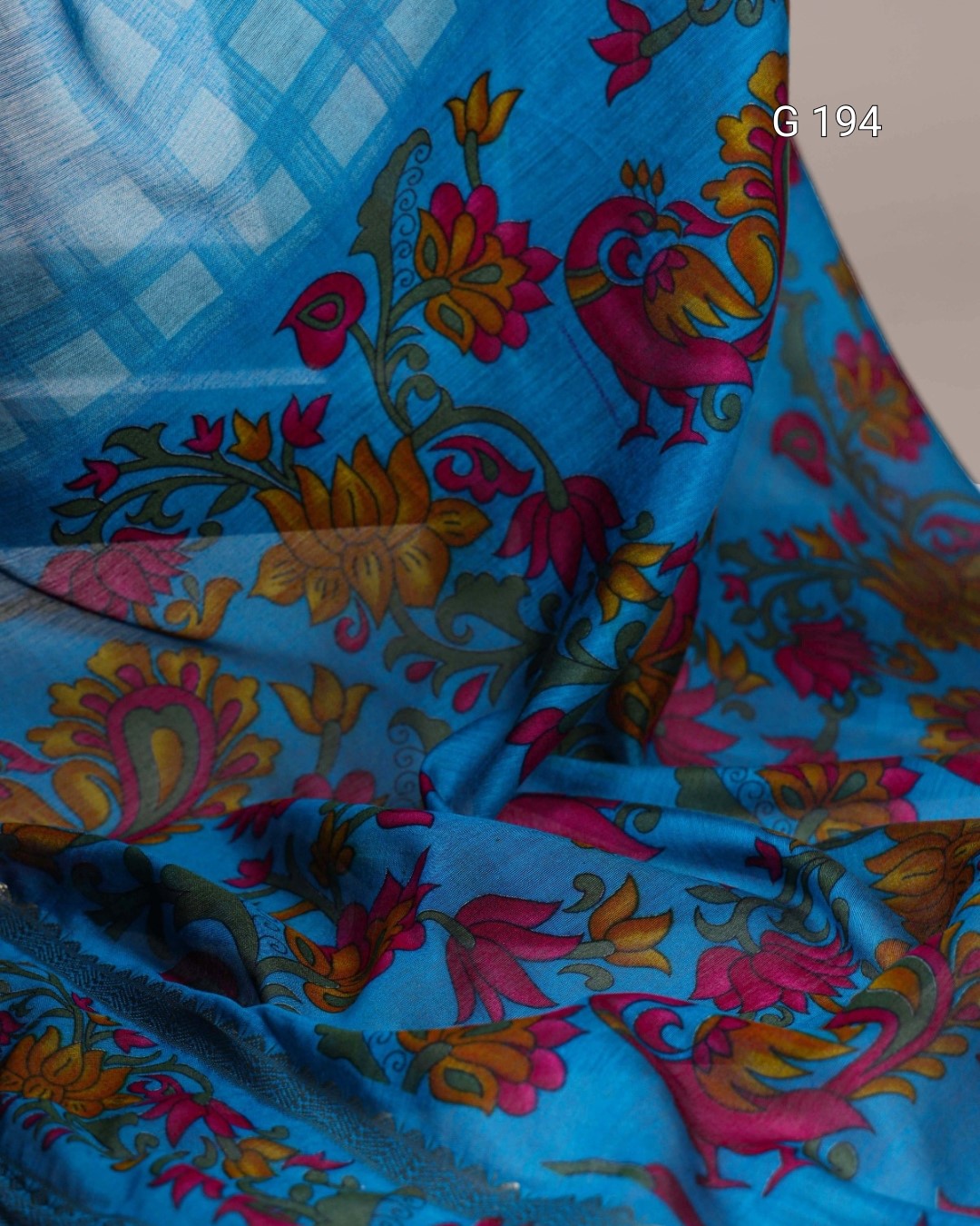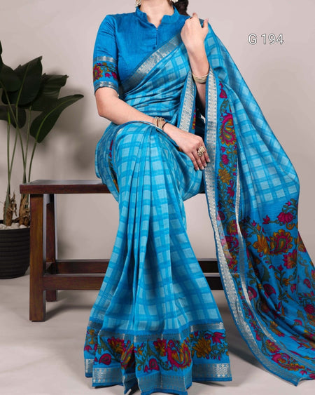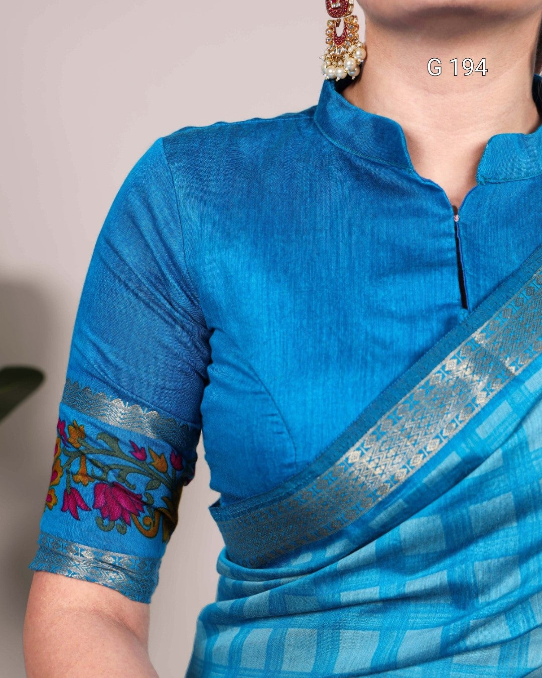 Sky Blue Polyester Viscose Chanderi Saree with Zari Weaving Work – G 194 Sky Blue