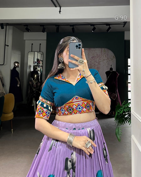 Lehenga Work : Floral Print With Paper Mirror Lace Touch Up