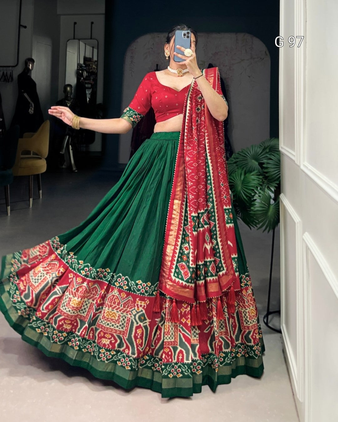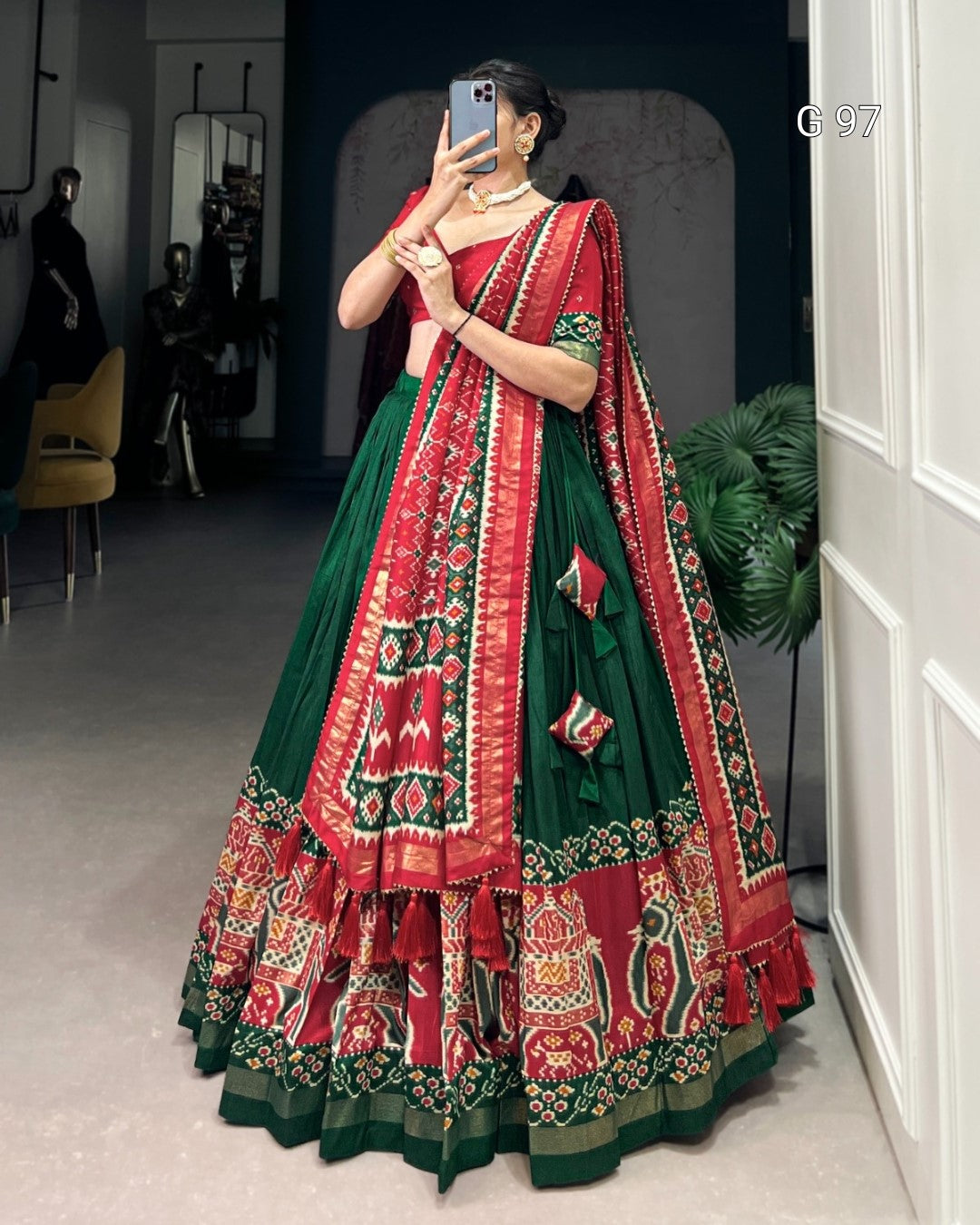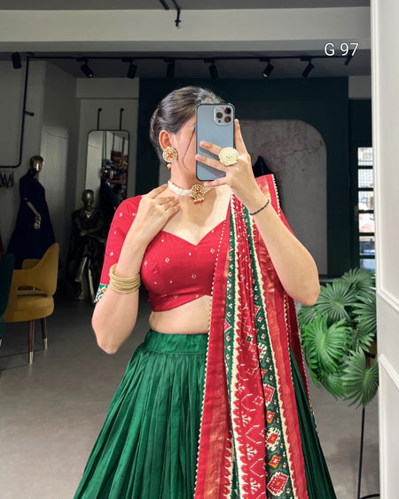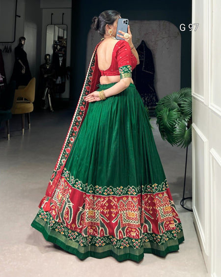 Tasar Silk Lehenga with Patola Print & Foil Work – G 97 Green