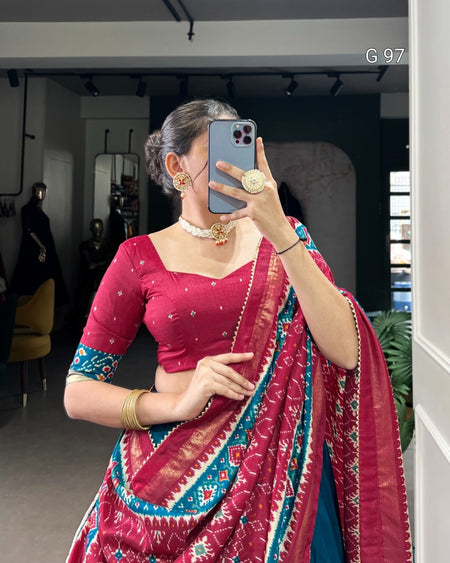 Tasar Silk Lehenga with Patola Print & Foil Work – G 97 Teal