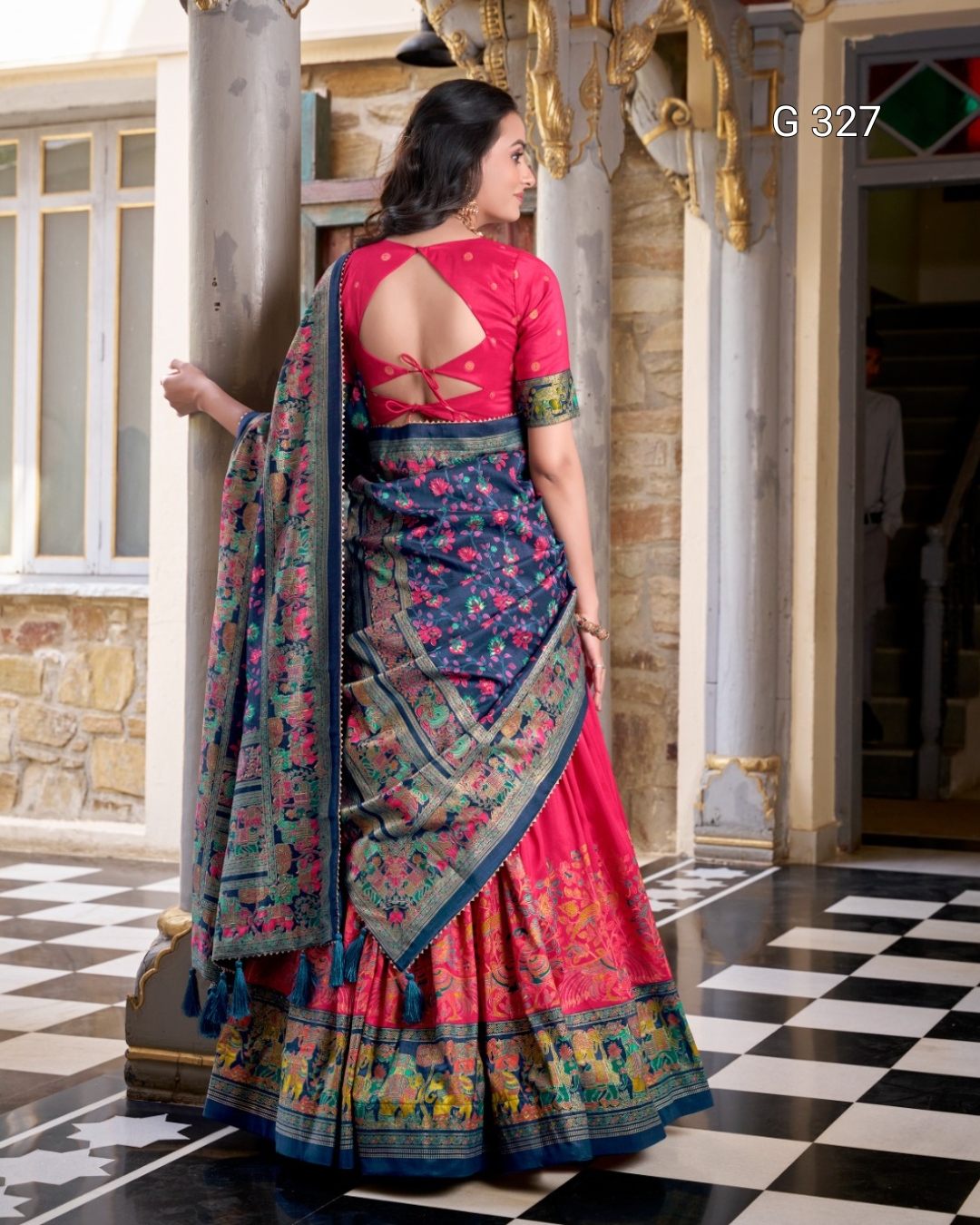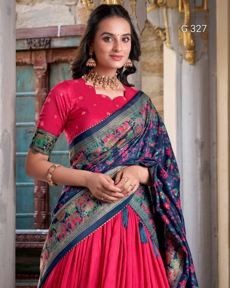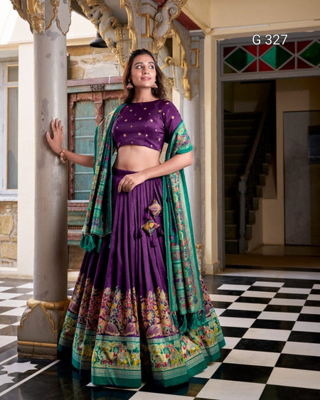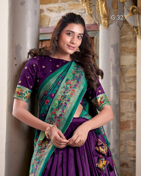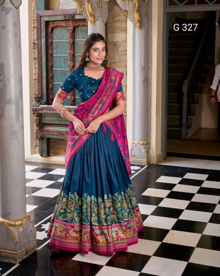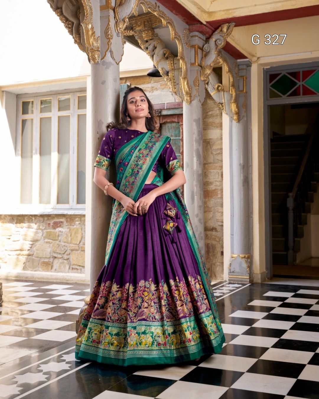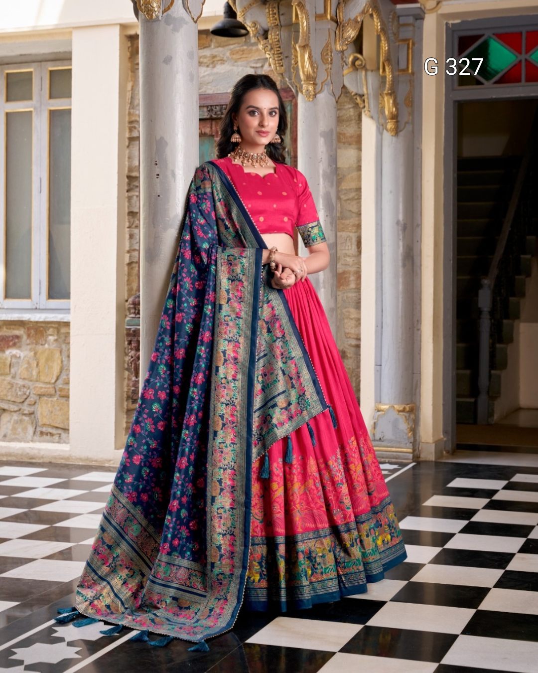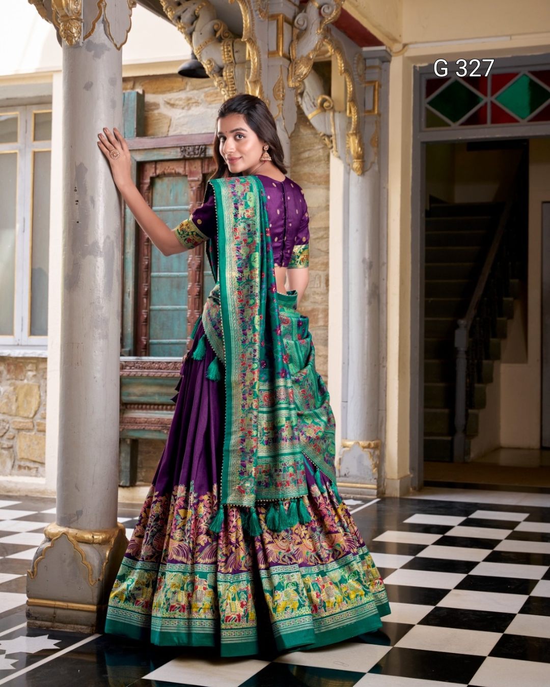 Tasar Silk Lehenga with Printed Foil & Gotta Patti Work – G 327