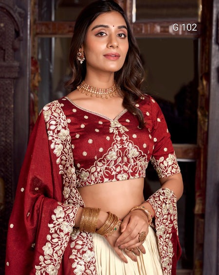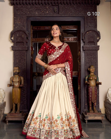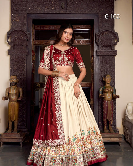 Tussar Silk Lehenga with Foil Work – G 102 Off white