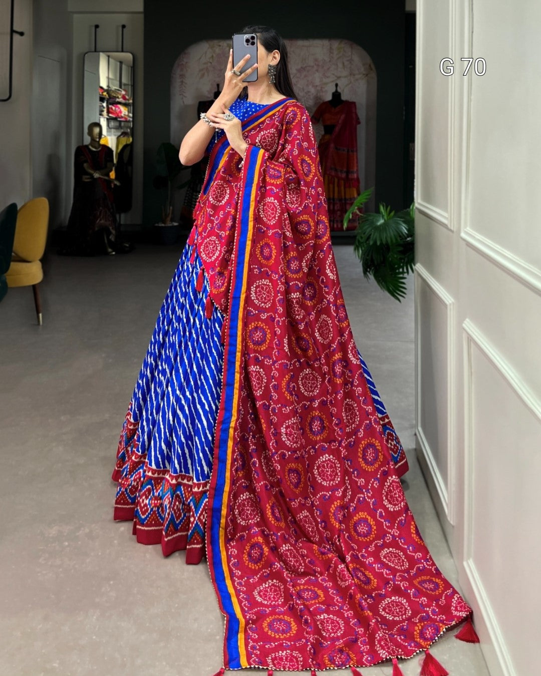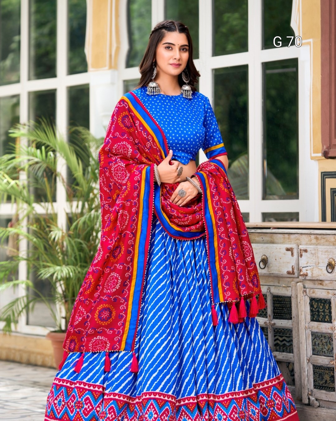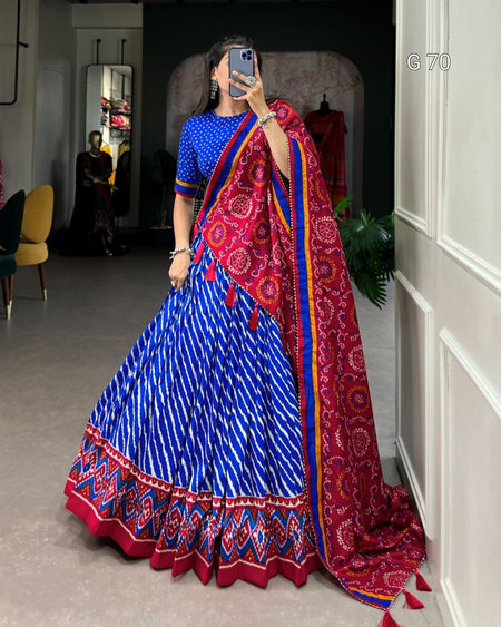 Tussar Silk Lehenga with Leheriya & Patola Print Border – G 70 Royal Blue