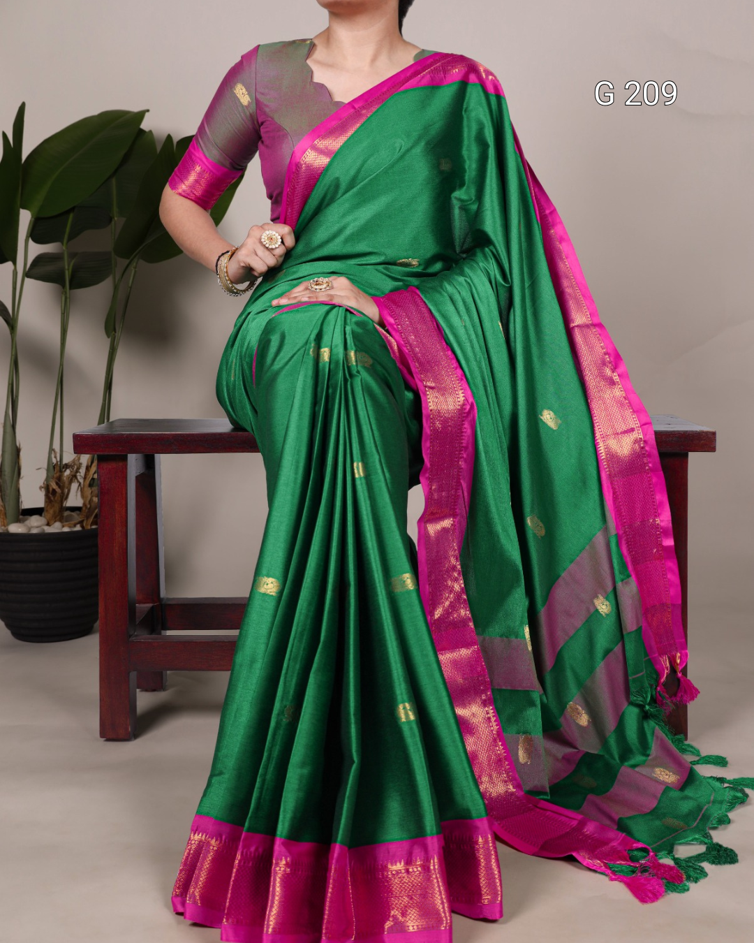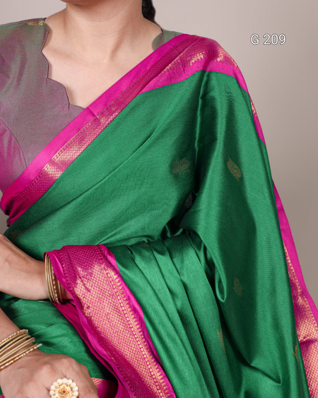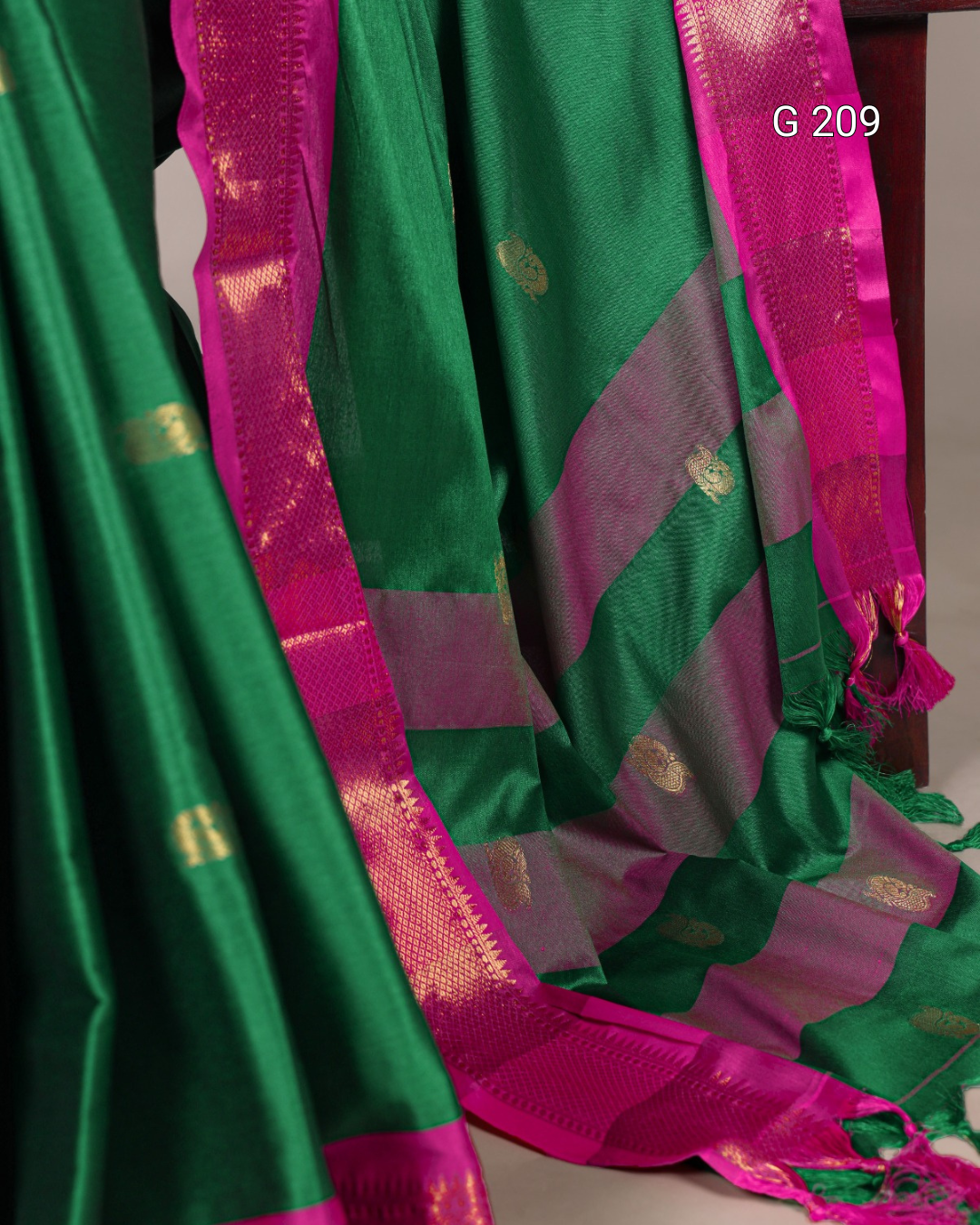 Weaving Work Cotton Silk Saree with Paithani Concept – G 209 Green