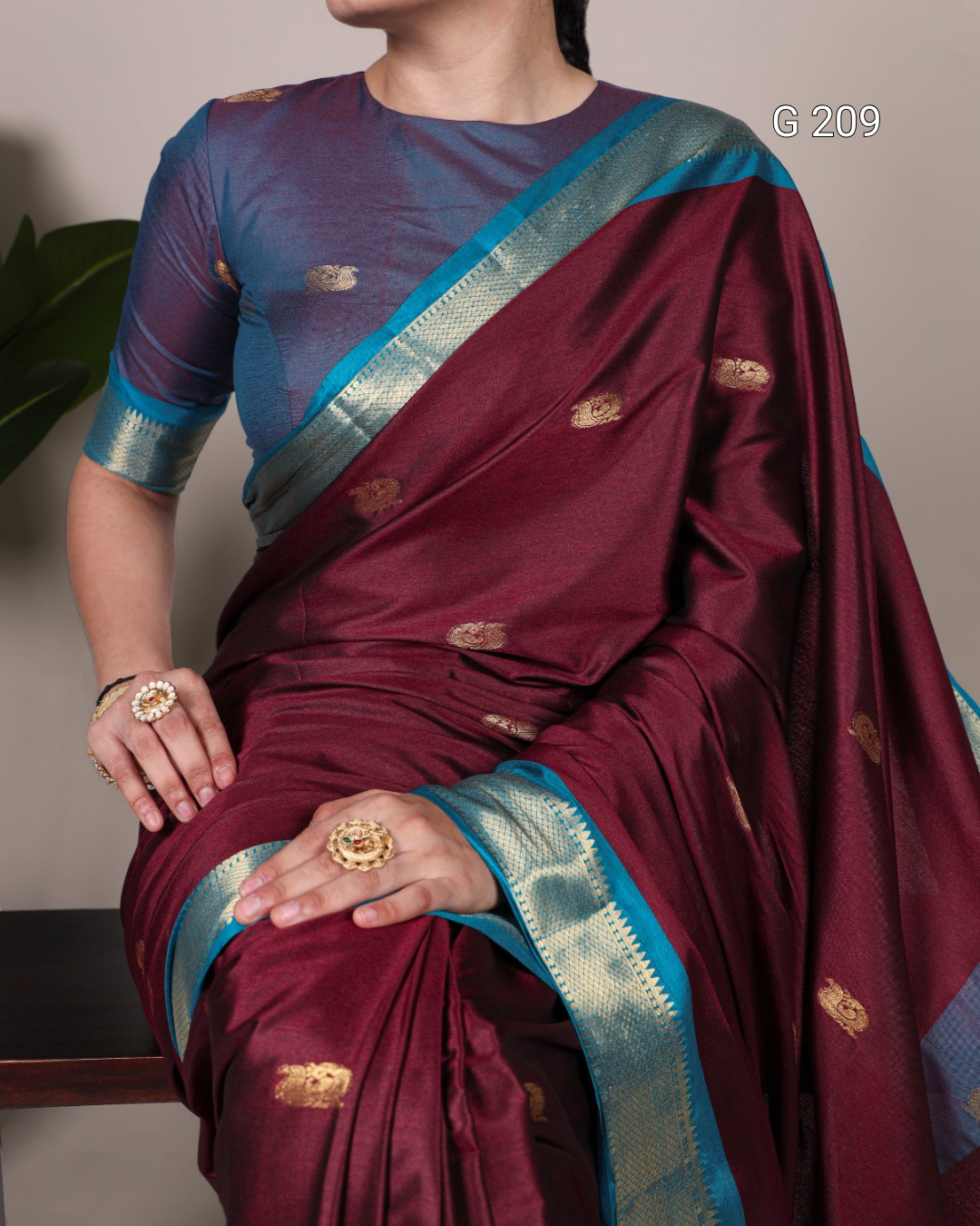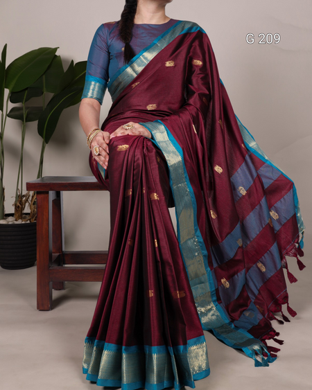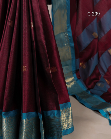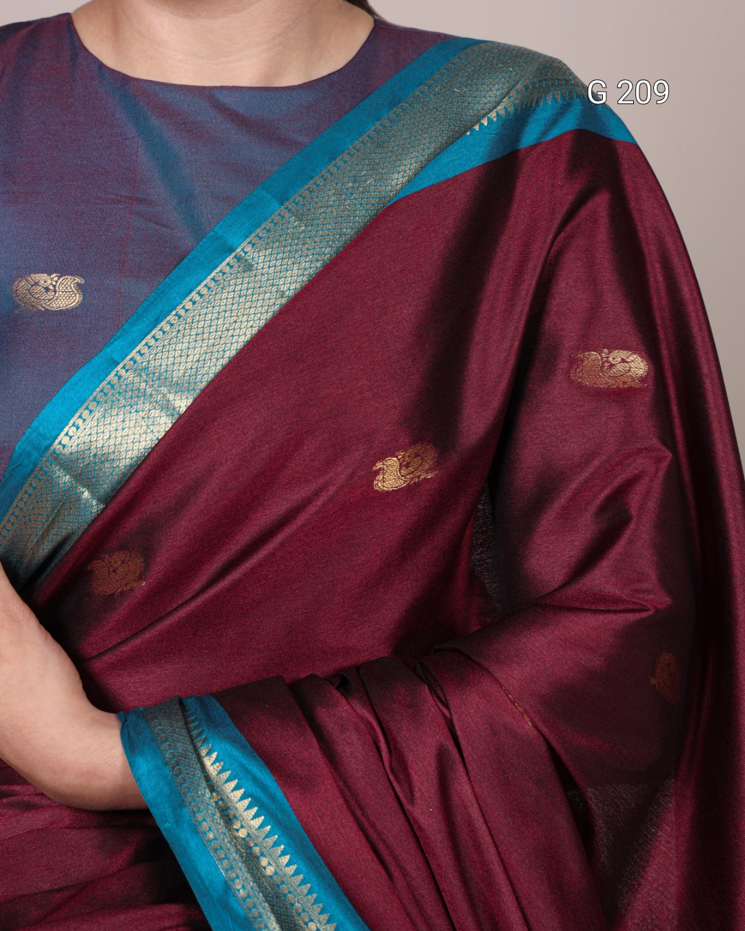 Weaving Work Cotton Silk Saree with Paithani Concept – G 209 Wine