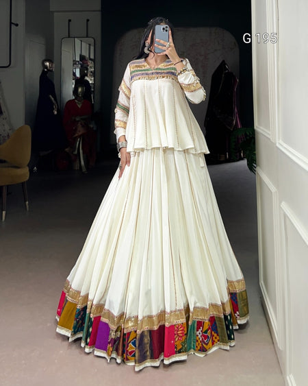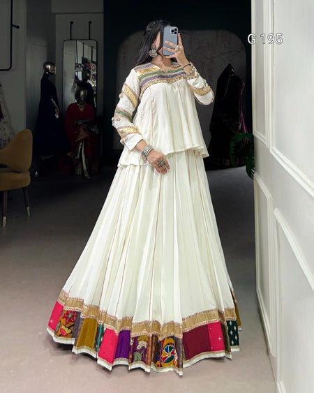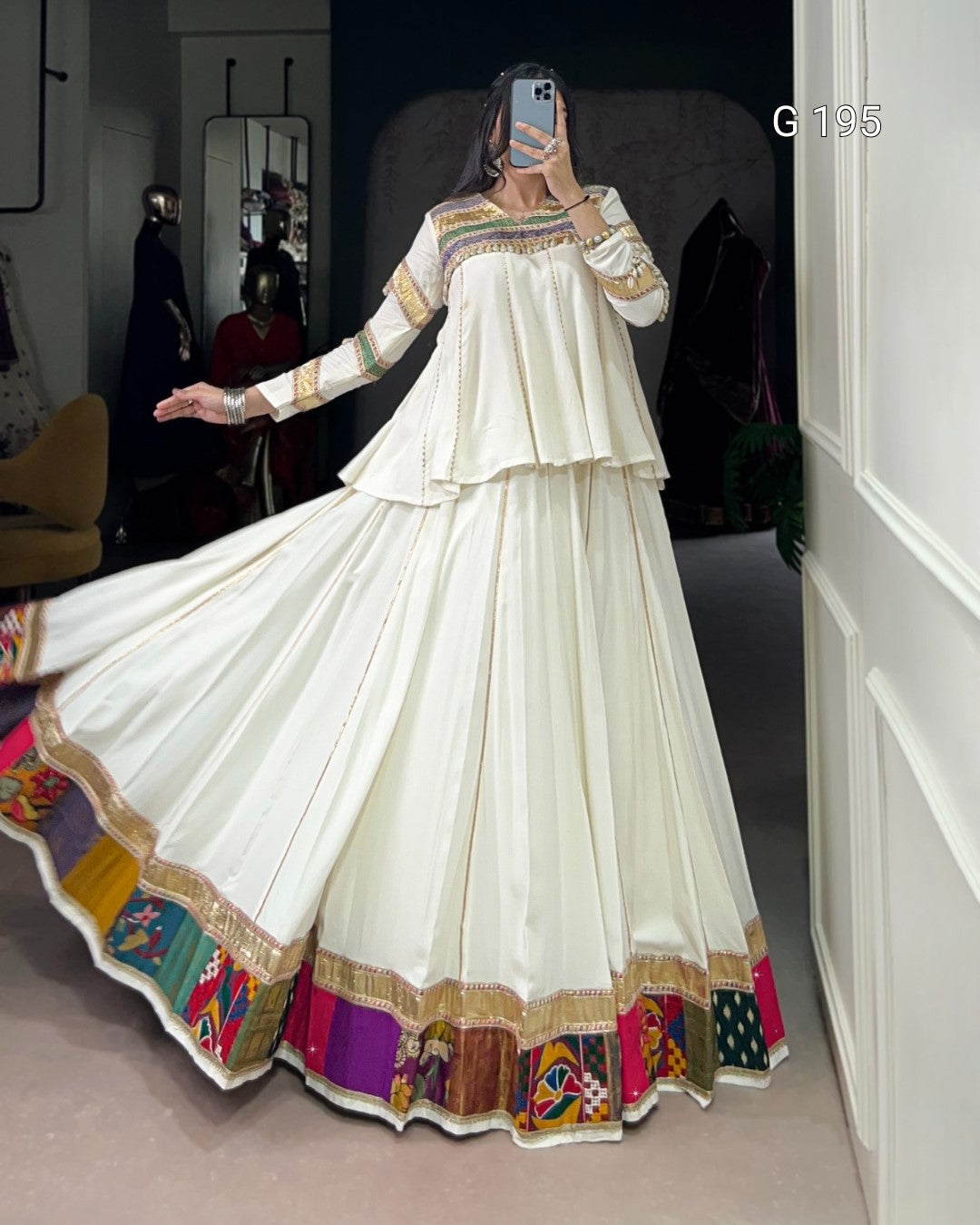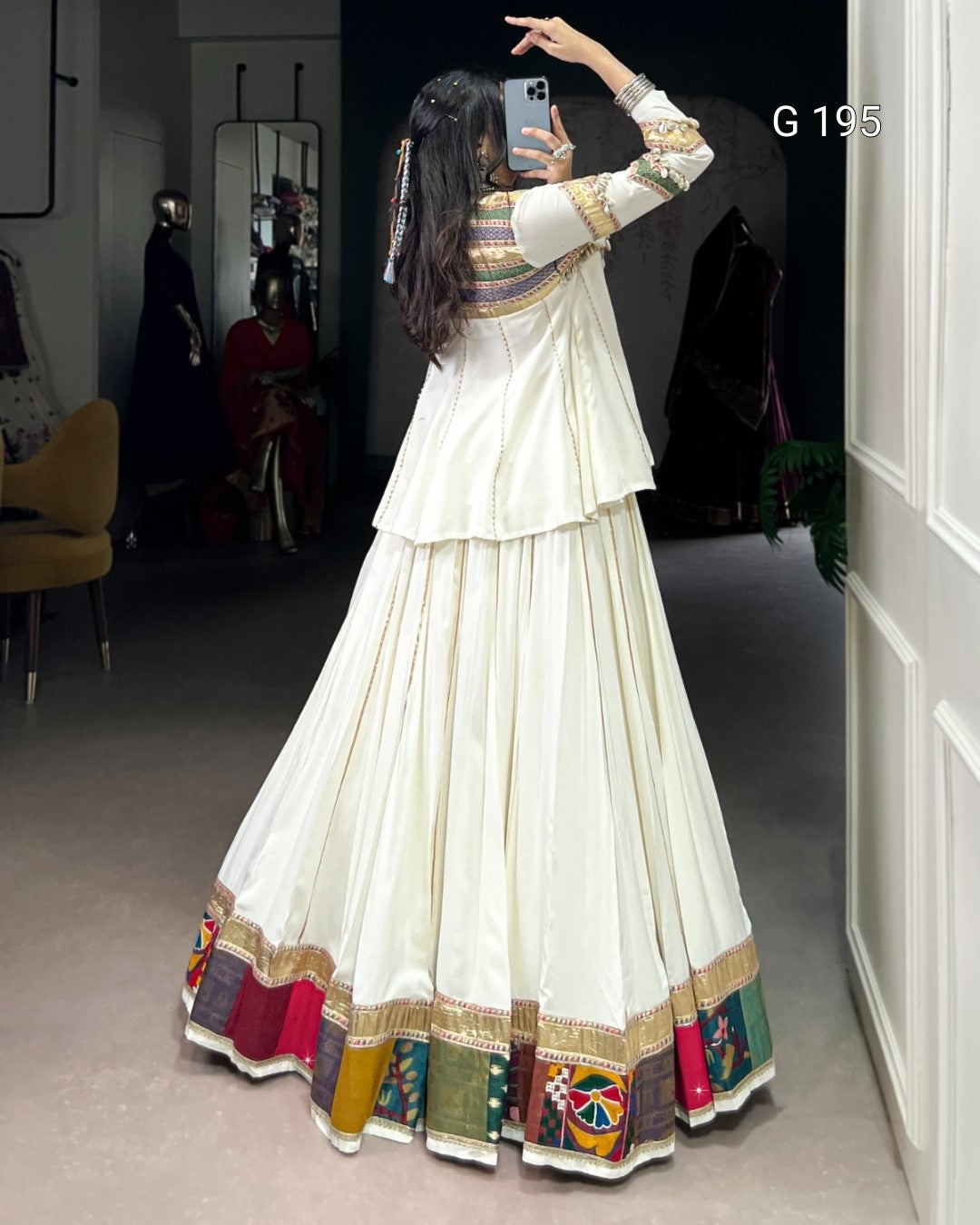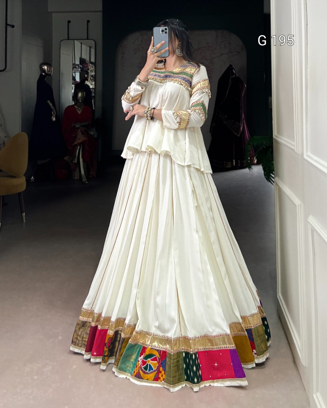 White Pure Rayon Lehenga with Multi Patch Work & Gota Patti Lace – G 195 White