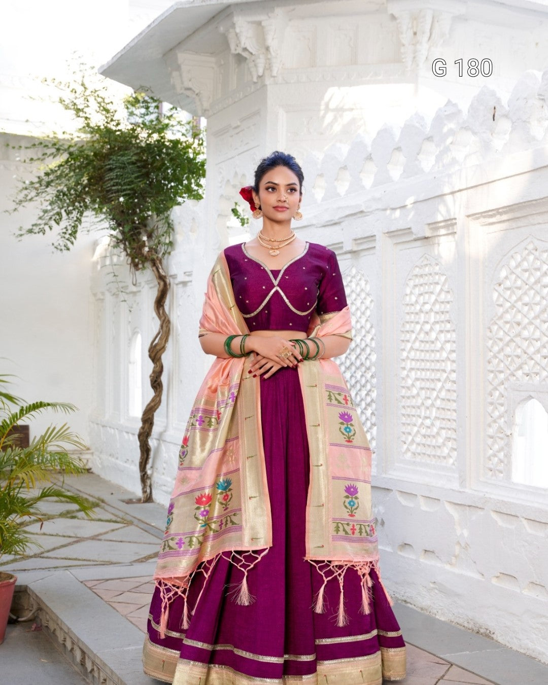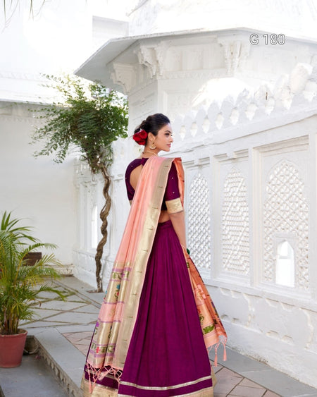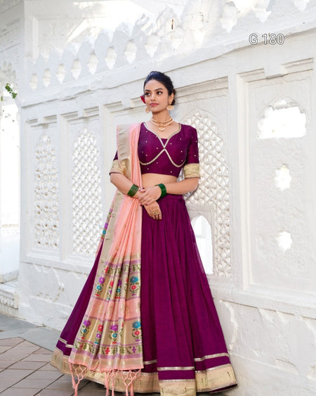Wine Vichitra Silk Lehenga with Paithni Lace Border & Zari Weaving Dupatta – G 180 Wine