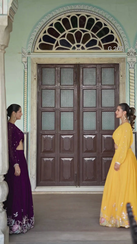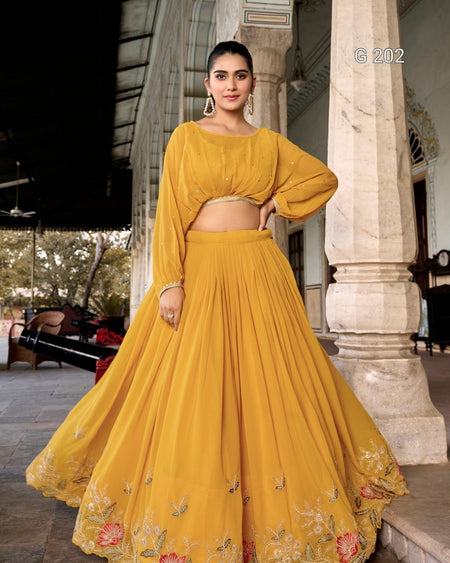 Yellow Georgette Lehenga with Sequins and Thread Embroidery Work, Sequins Butties Top – G 202 Yellow