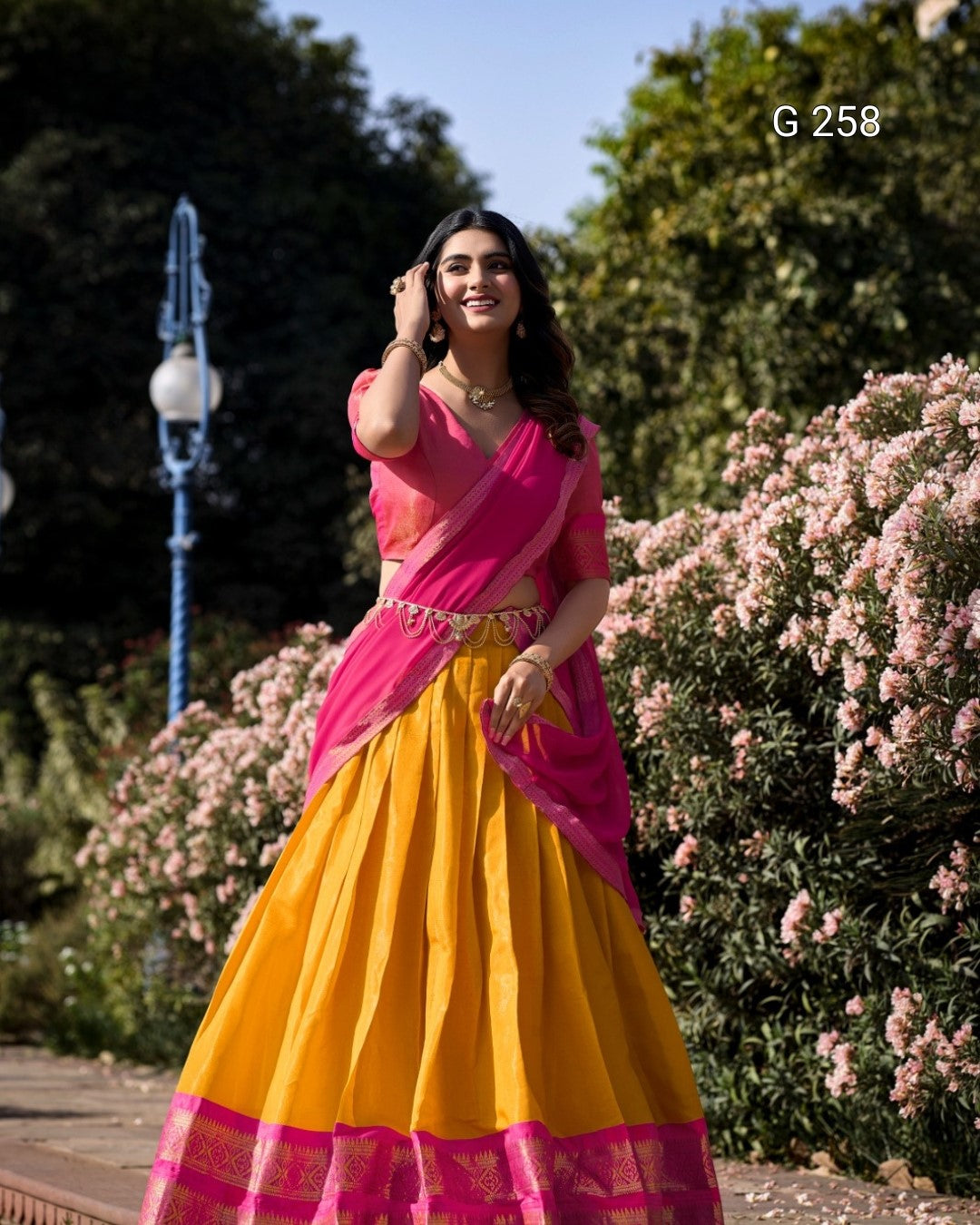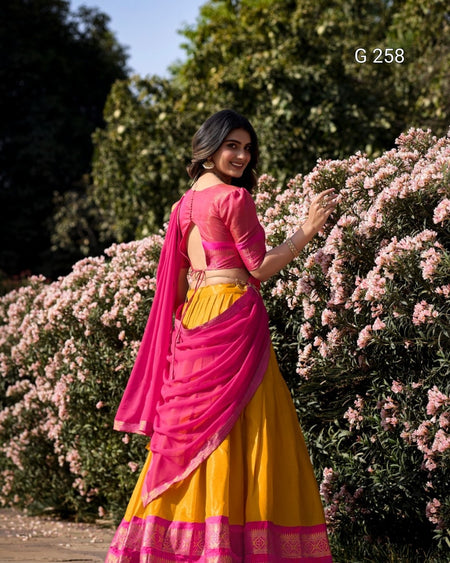 Zari Weaving Kanchipuram Lehenga with Lace Border – G 258 Mustard