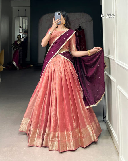 Zari Weaving Kanchipuram Lehenga with Vichitra Silk Dupatta – G 237 Salmon